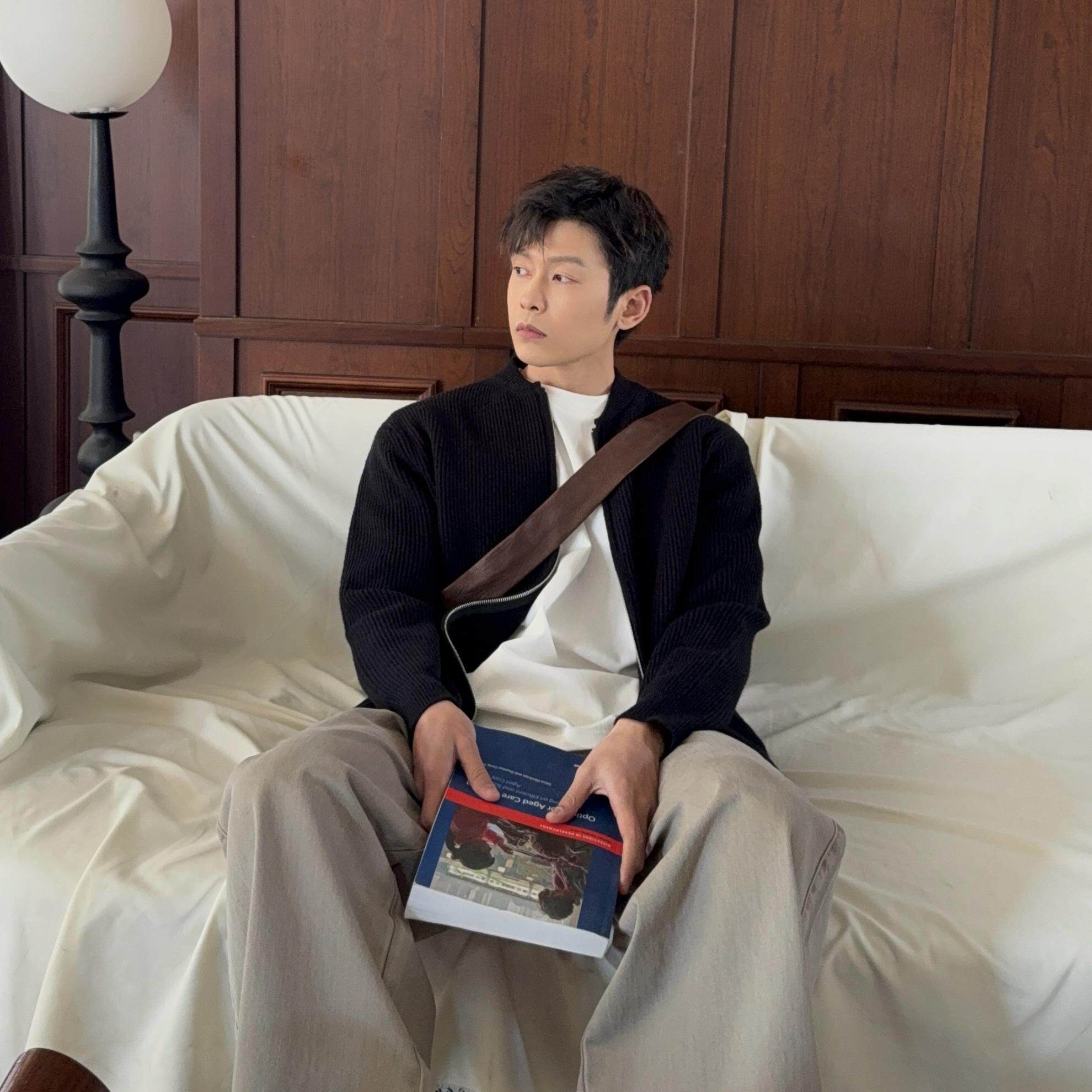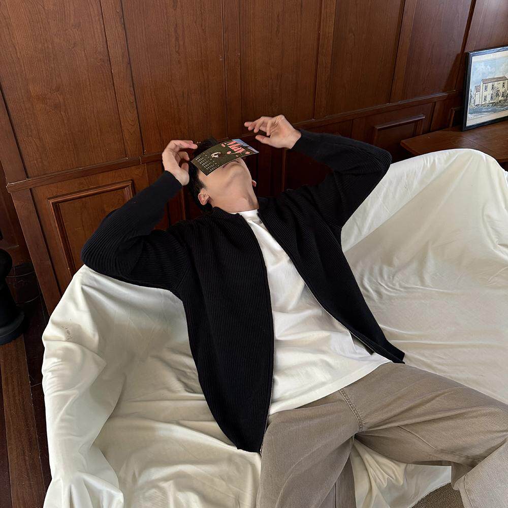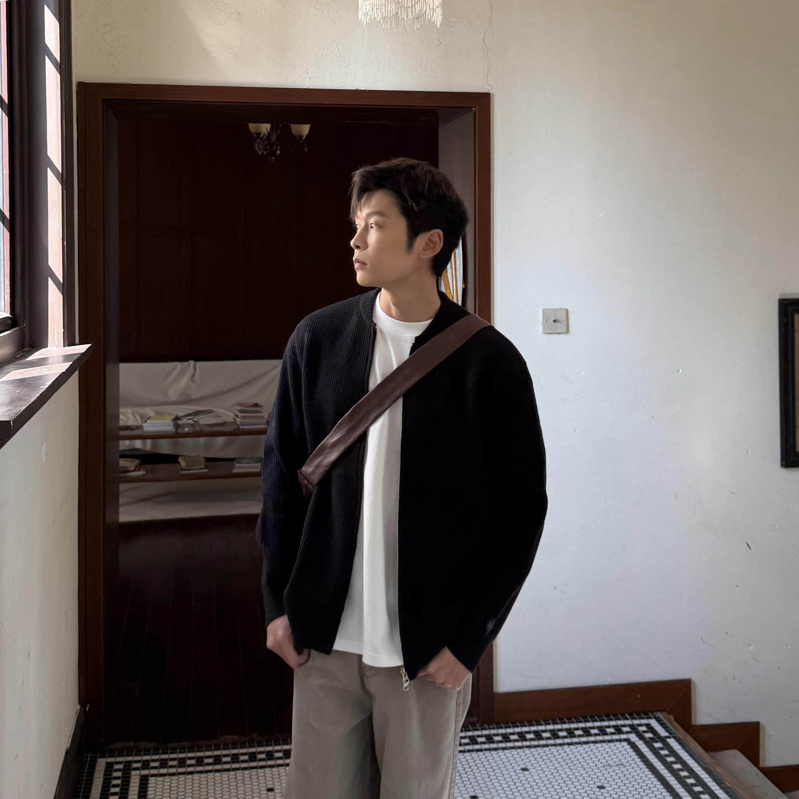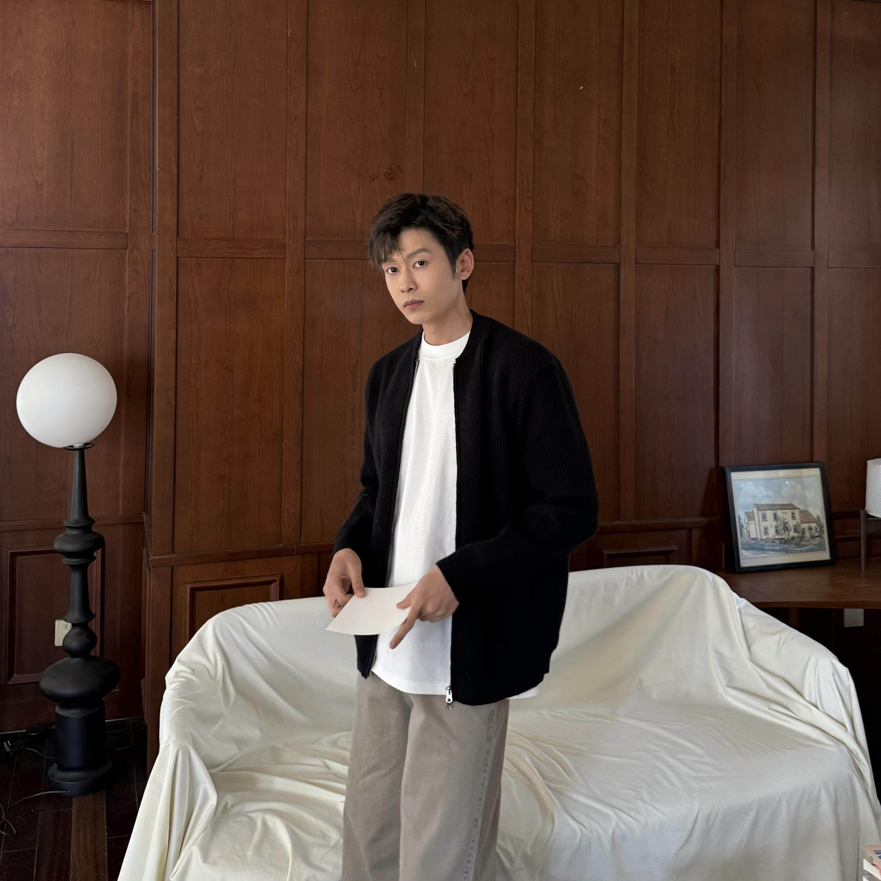 马克斯星球 黑色简约高级感毛衣开衫男慵懒风休闲百搭长袖针织衫