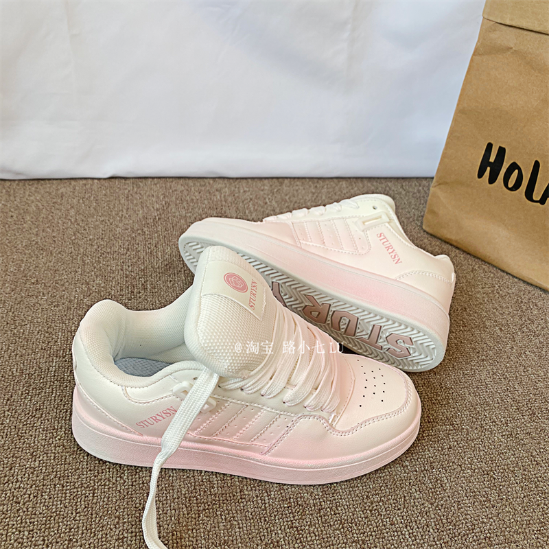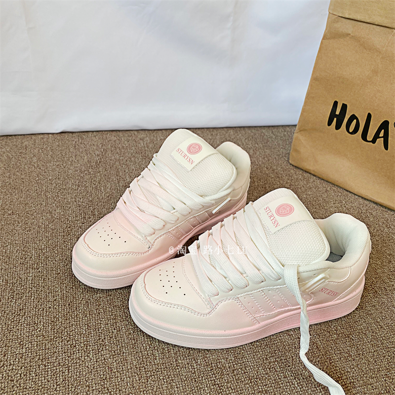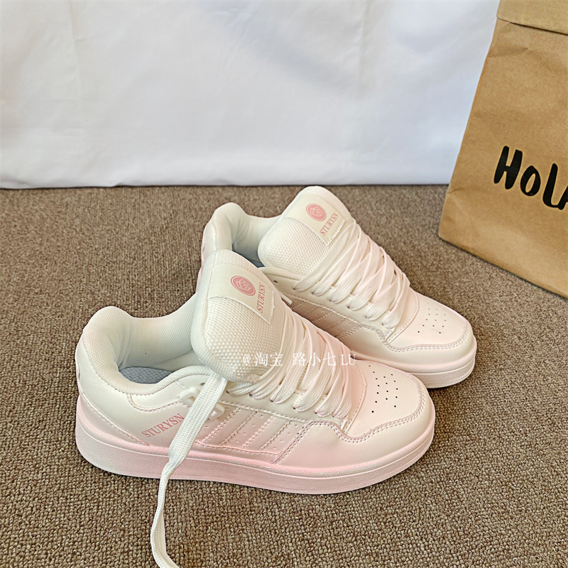 港风复古粉色做旧面包鞋女ins潮2025秋季新款百搭运动休闲板鞋子