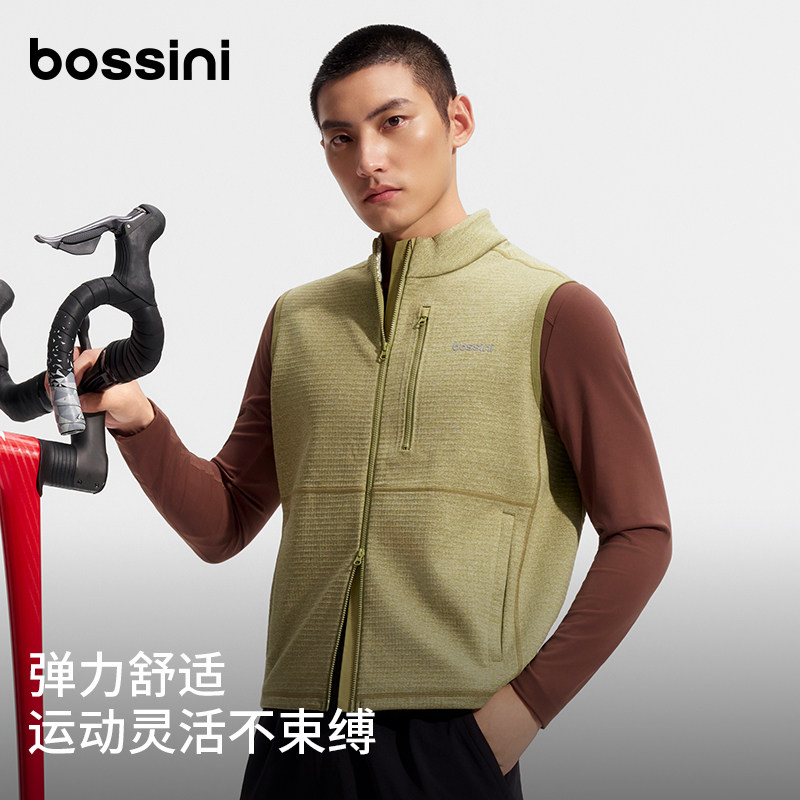 bossini堡狮龙2025新品户外运动马甲男款跑步保暖弹力背心上衣