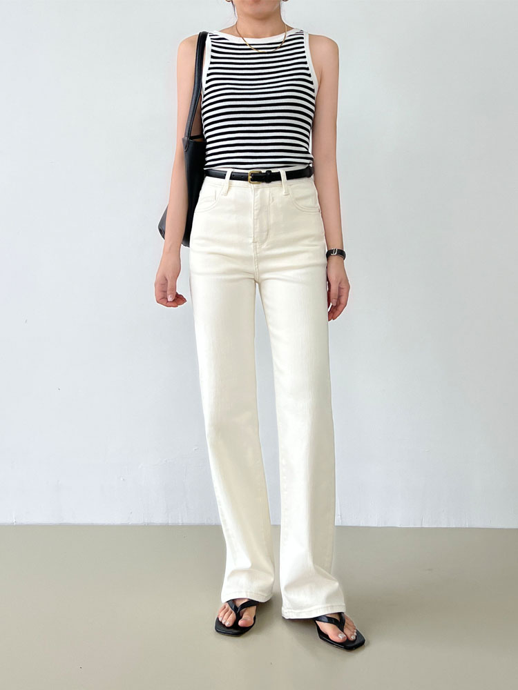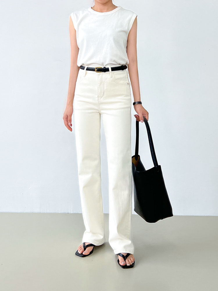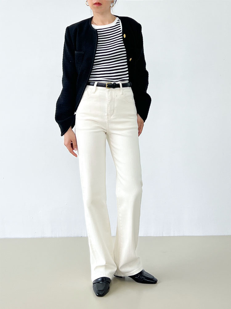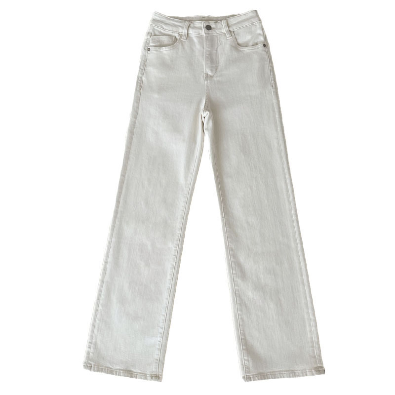 巨显腿长!法式白色直筒牛仔裤女长裤高腰显瘦弹力宽松窄版阔腿裤