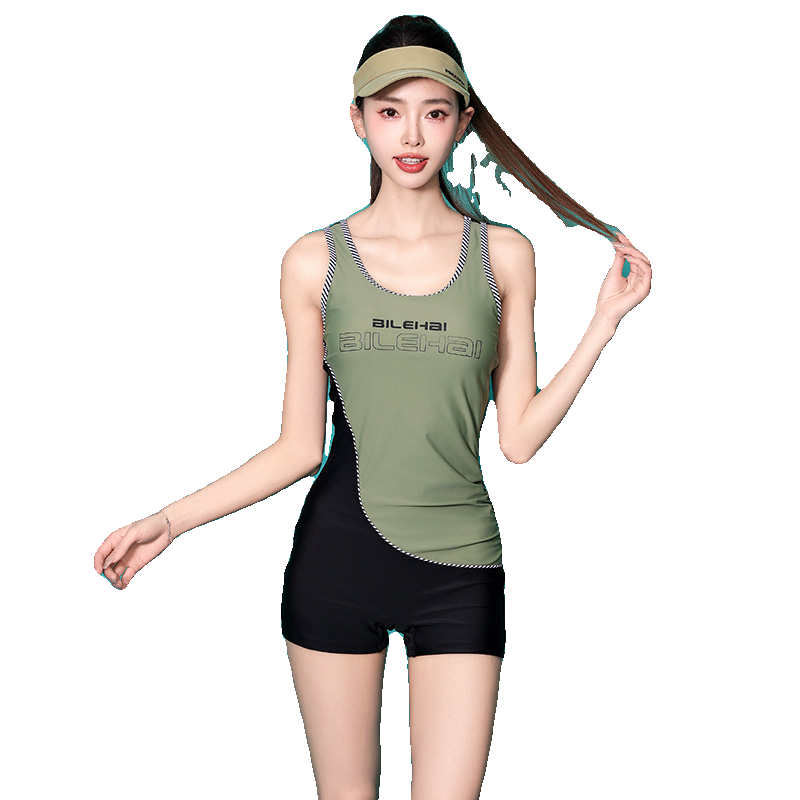 2024新款连体平角泳衣女专业运动夏保守遮肚显瘦大码泡温泉游泳衣