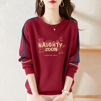 纯棉长袖字母印花上衣女秋冬