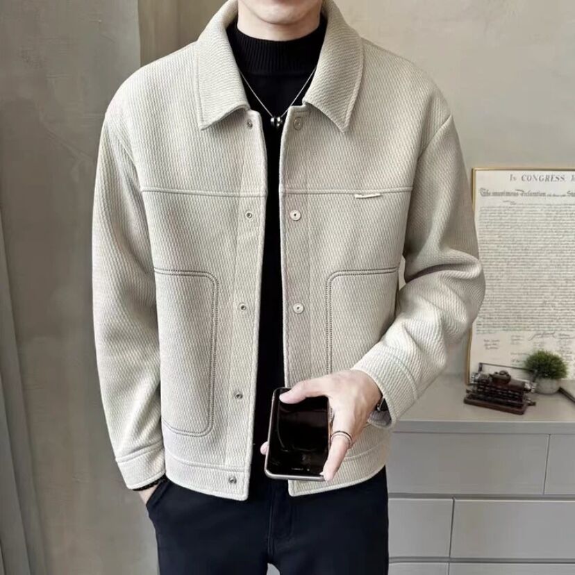 2025秋冬男士新款翻领明线帅气外套夹克潮流百搭韩版休闲保暖上衣