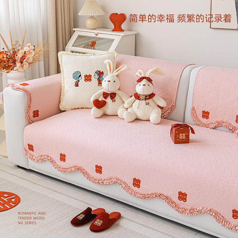 喜庆纯棉沙发垫异形四季通用红色婚庆婚房客厅布艺沙发套罩盖布巾