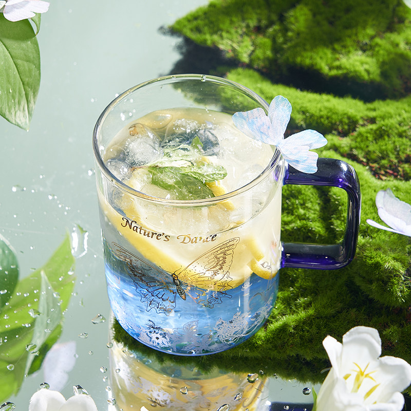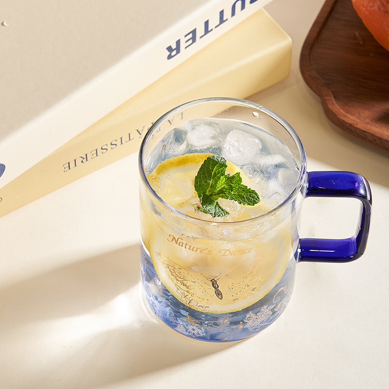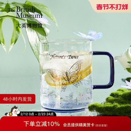 大英博物馆博物志系列蓝金蝴蝶把手玻璃杯高硼硅杯子茶杯水杯礼物