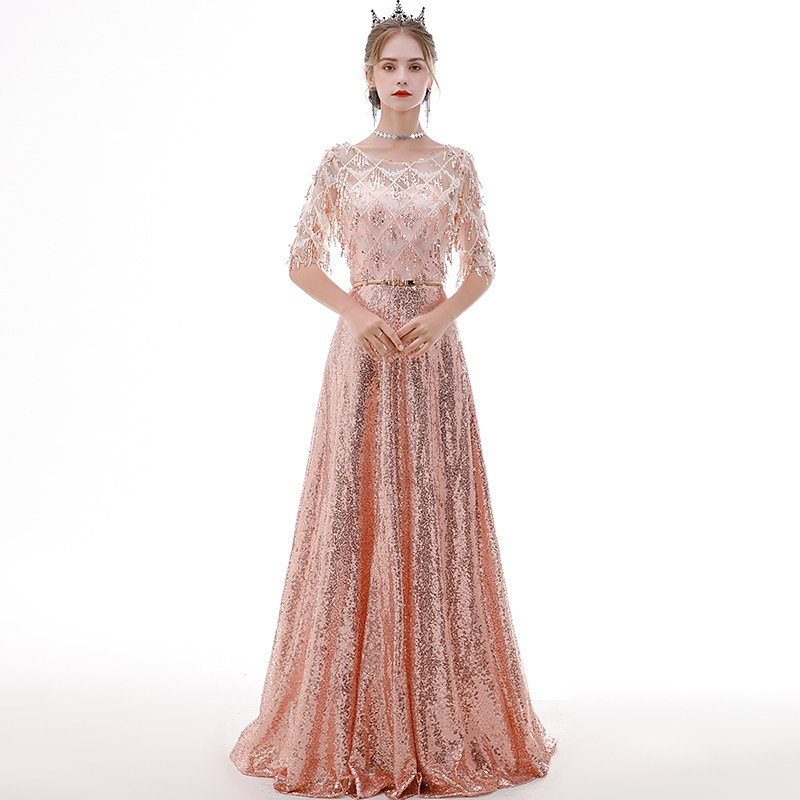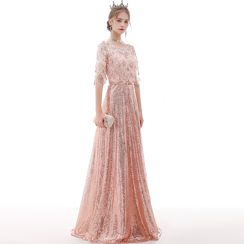 宴会晚礼服2021新款高端优雅长款主持人年会气质晚装裙演出服女春
