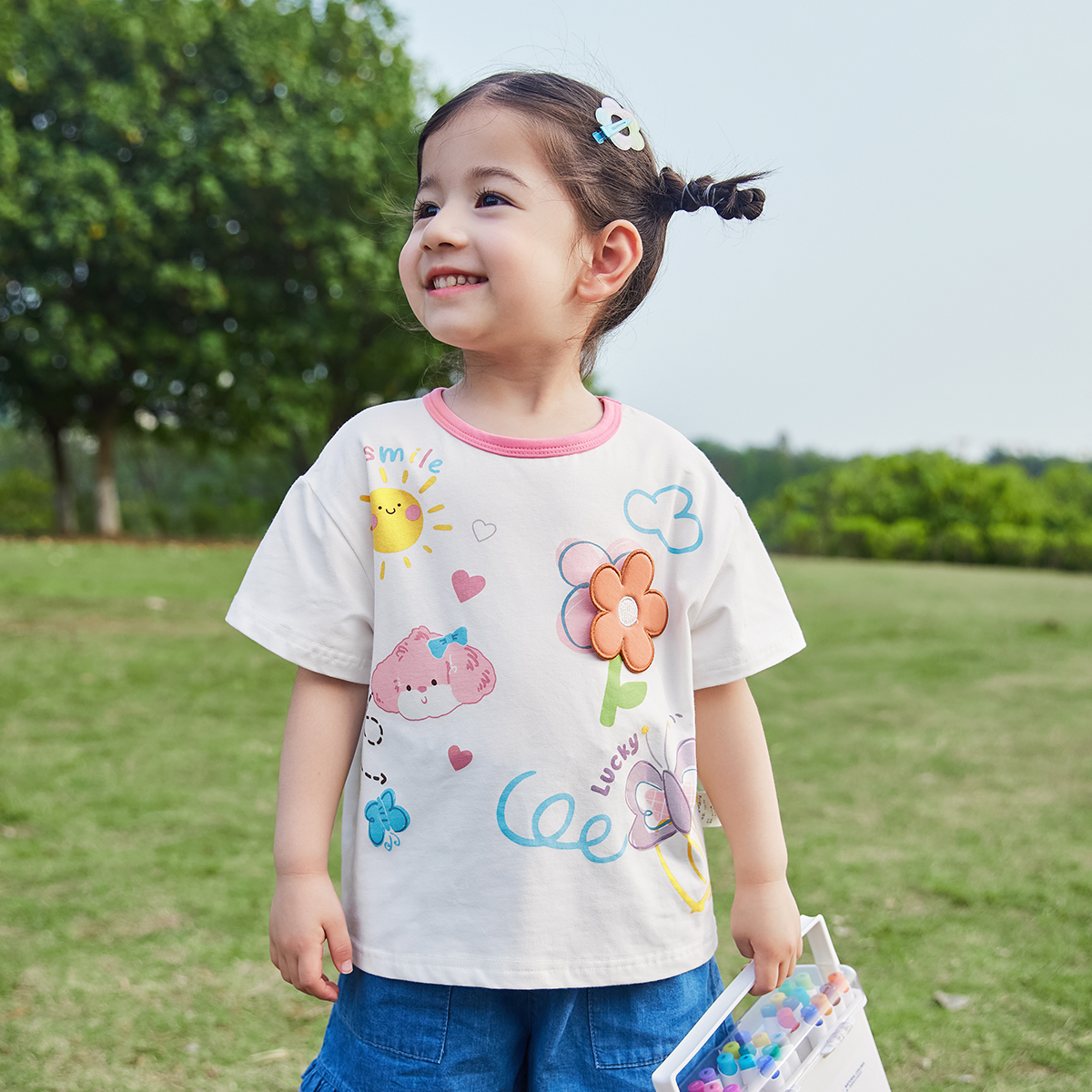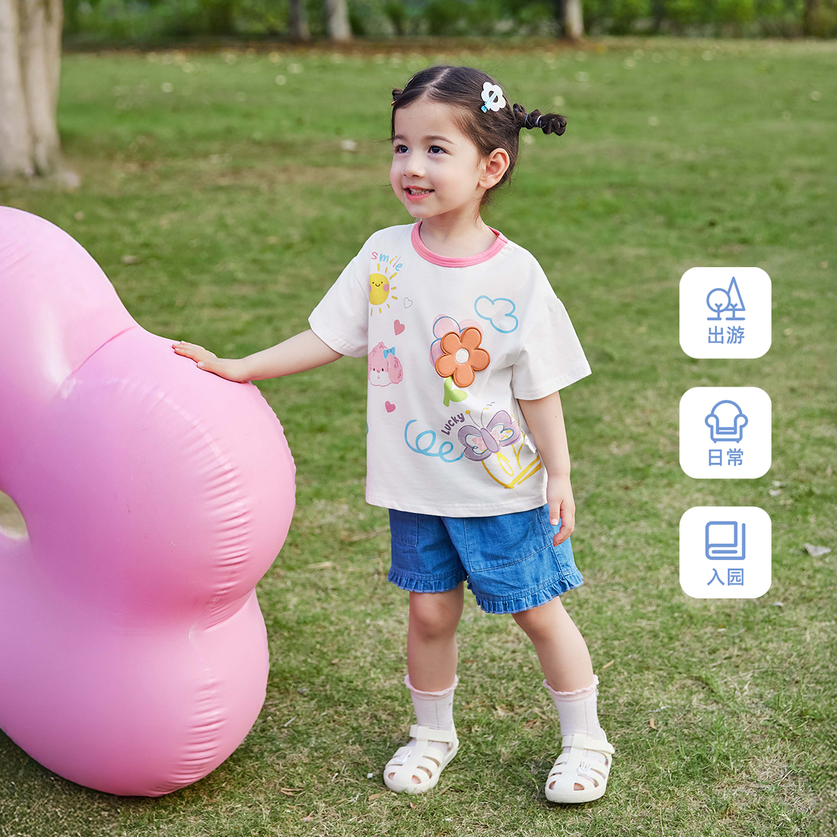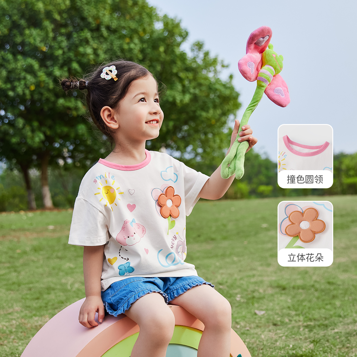 女童宽松t恤夏季6岁宝宝上衣小童甜美短袖女孩夏装儿童夏款衣服女