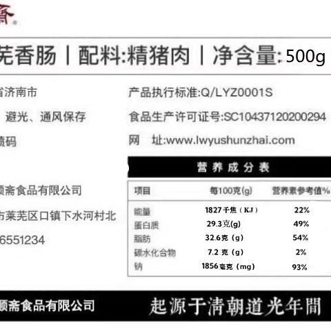 玉顺斋莱芜南肠黑肠即食山东香肠
