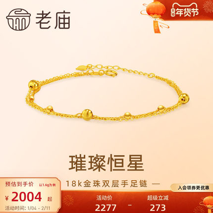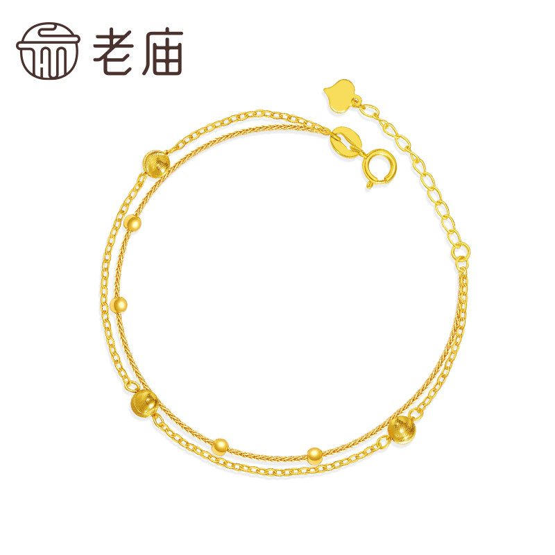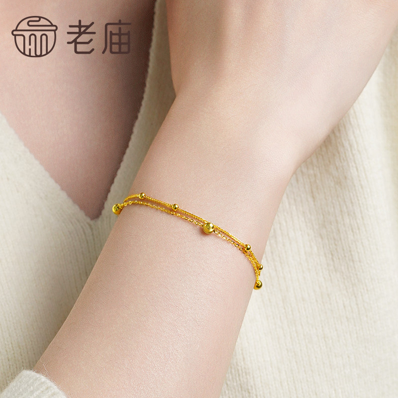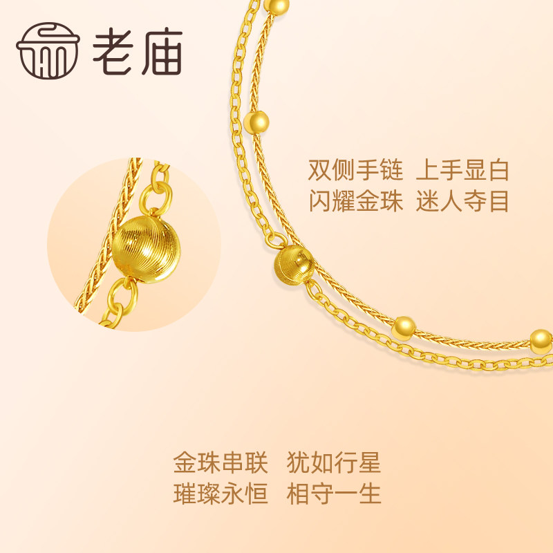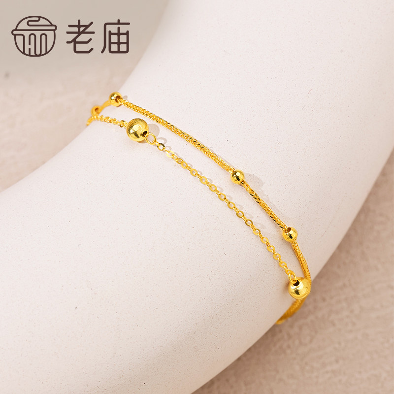老庙黄金18k金爆闪金珠双层手足链简约INS风百搭时尚气质送礼