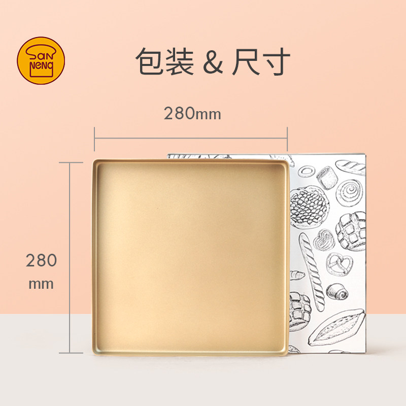 三能SN1312金色不沾烤盘正方形金盘28x28蛋糕卷月饼烘焙古早模具