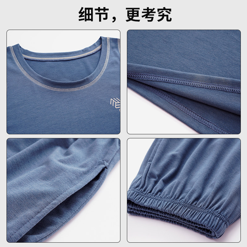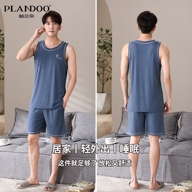 帕兰朵男士新款睡衣夏季薄款莫代尔背心家居服男冰丝凉感大码套装