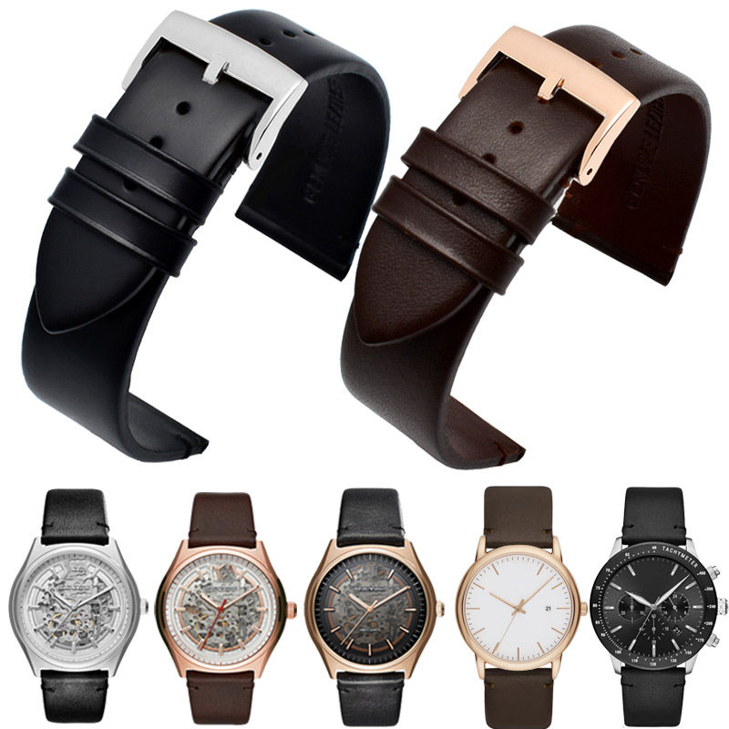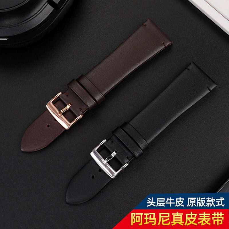 适用阿玛尼AR0389/2502/1918/60008黑武士薄款真皮商务男表带22mm