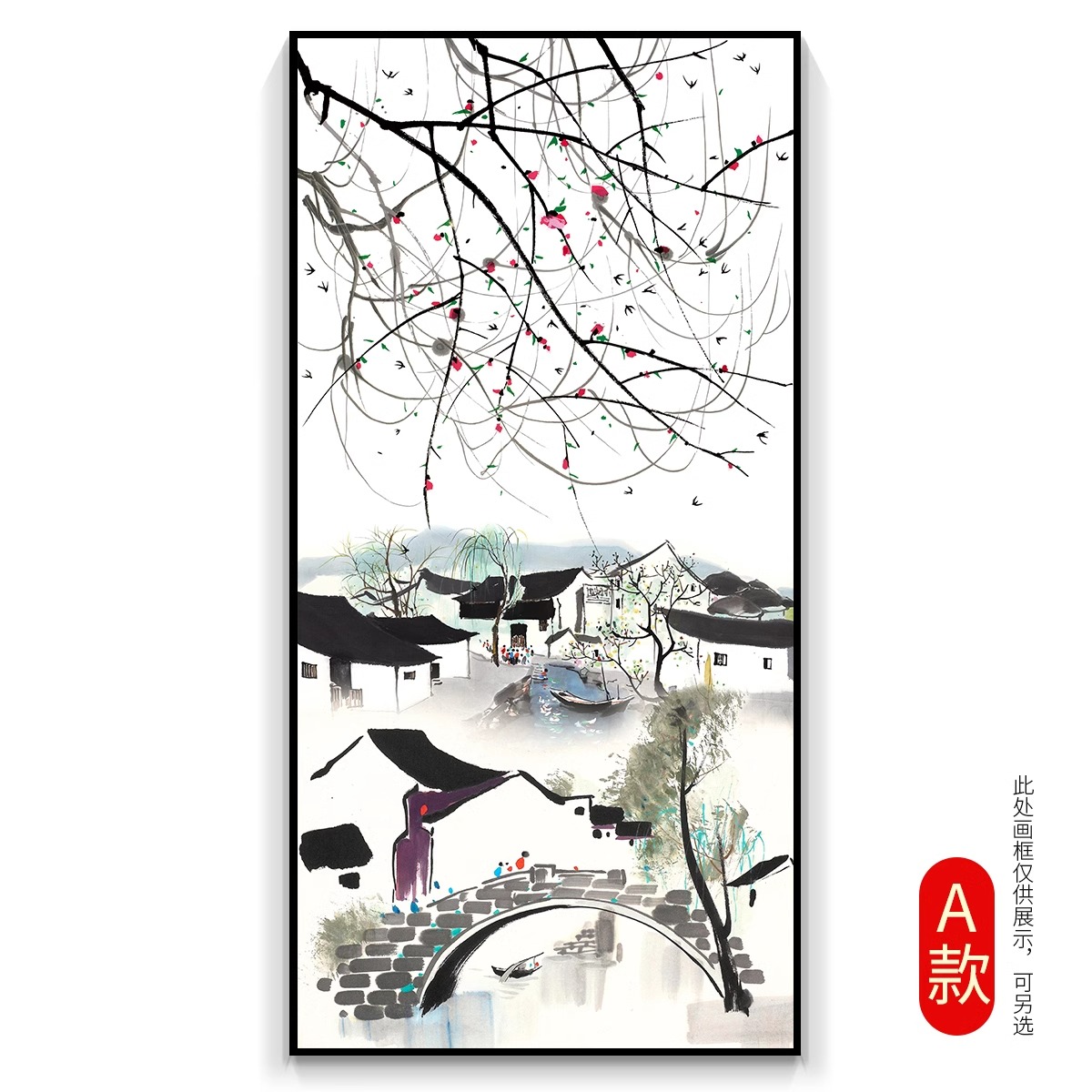 新中式吴冠中水墨画玄关过道装饰画客厅简约壁画江南水乡挂画国画