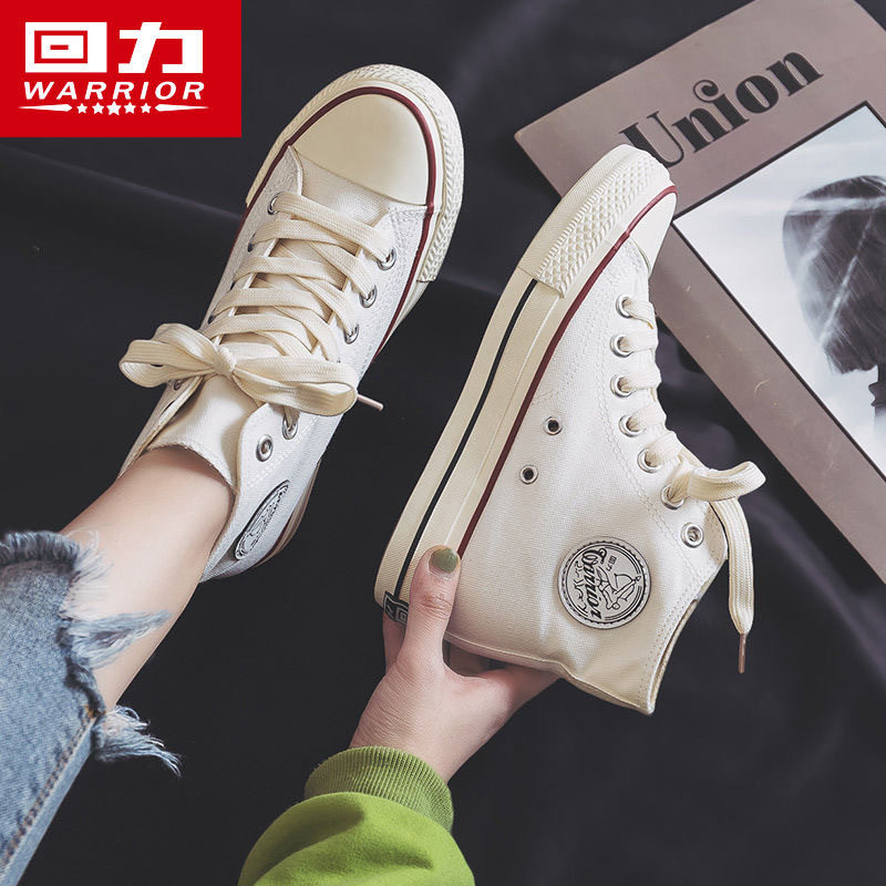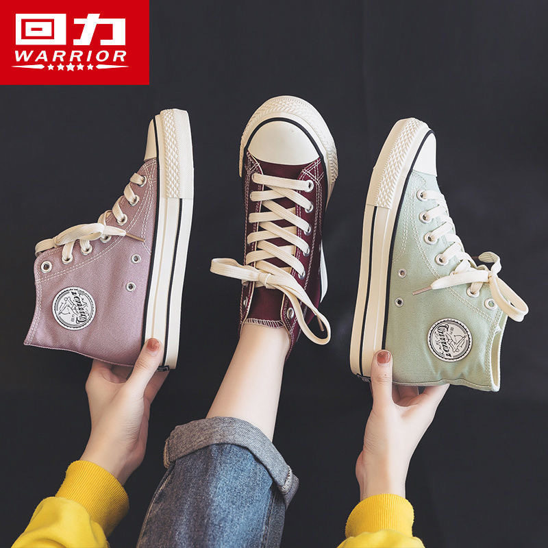回力内增高帆布鞋女春夏新款高帮女鞋学生韩版百搭透气休闲板鞋子