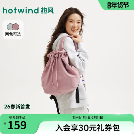 热风女士双肩包2026年春季新款编绳尼龙手提双肩包轻量运动风背包