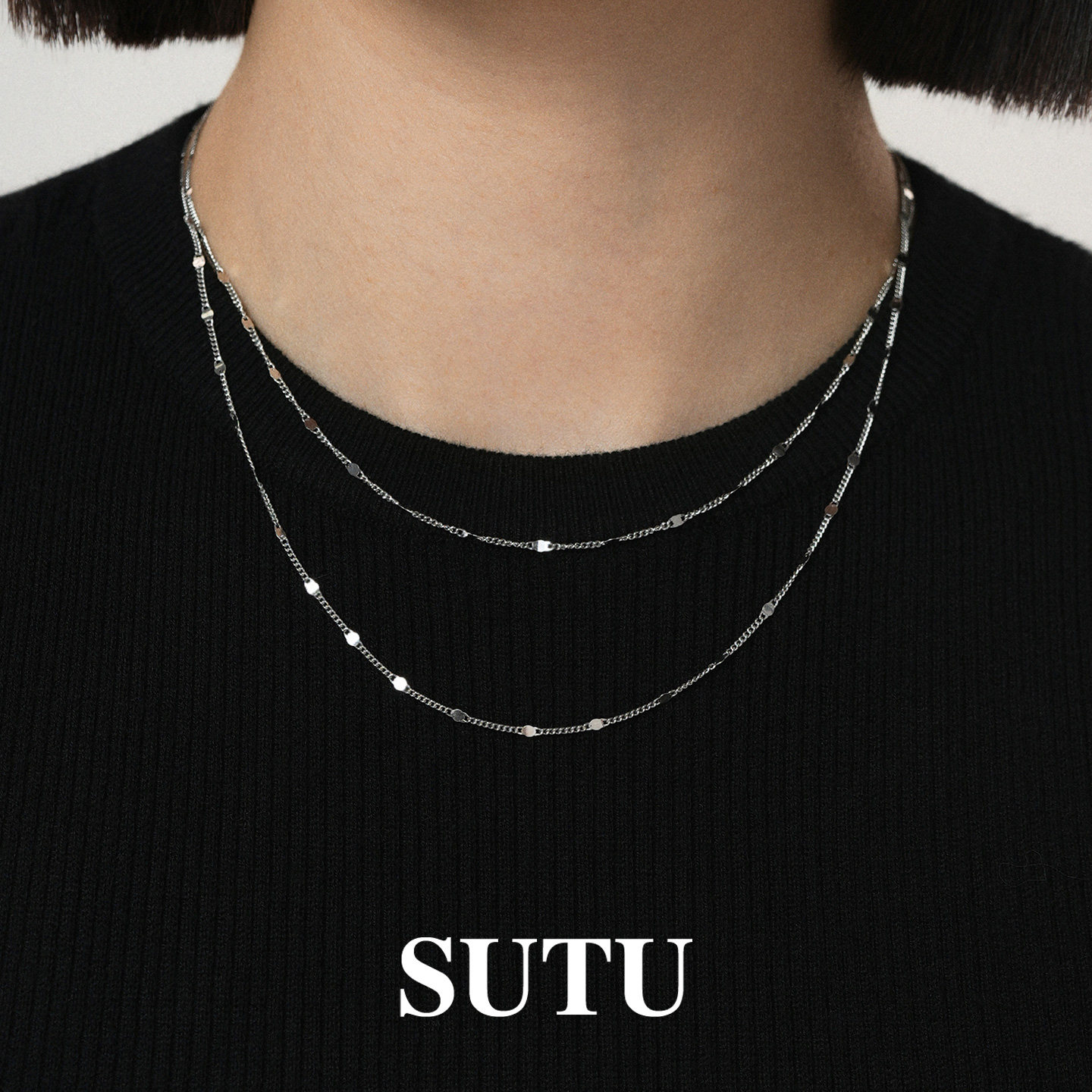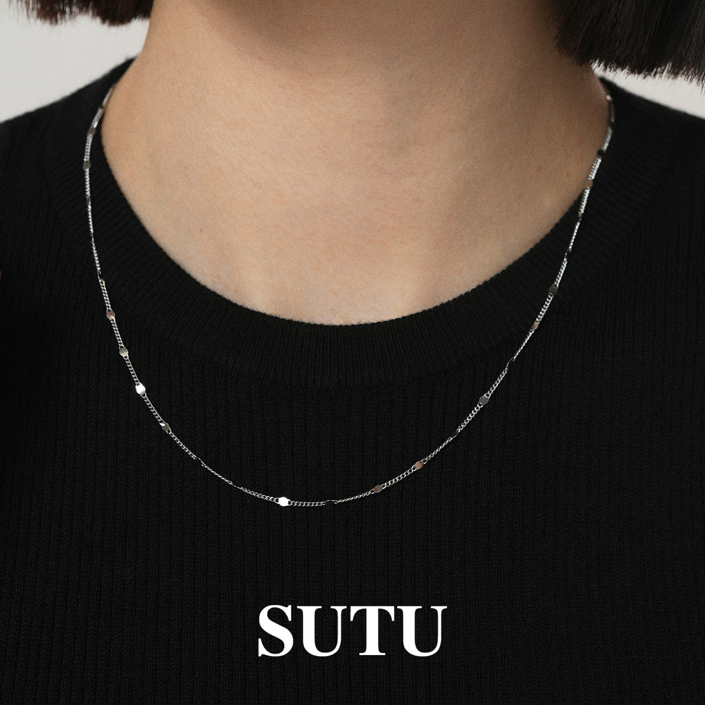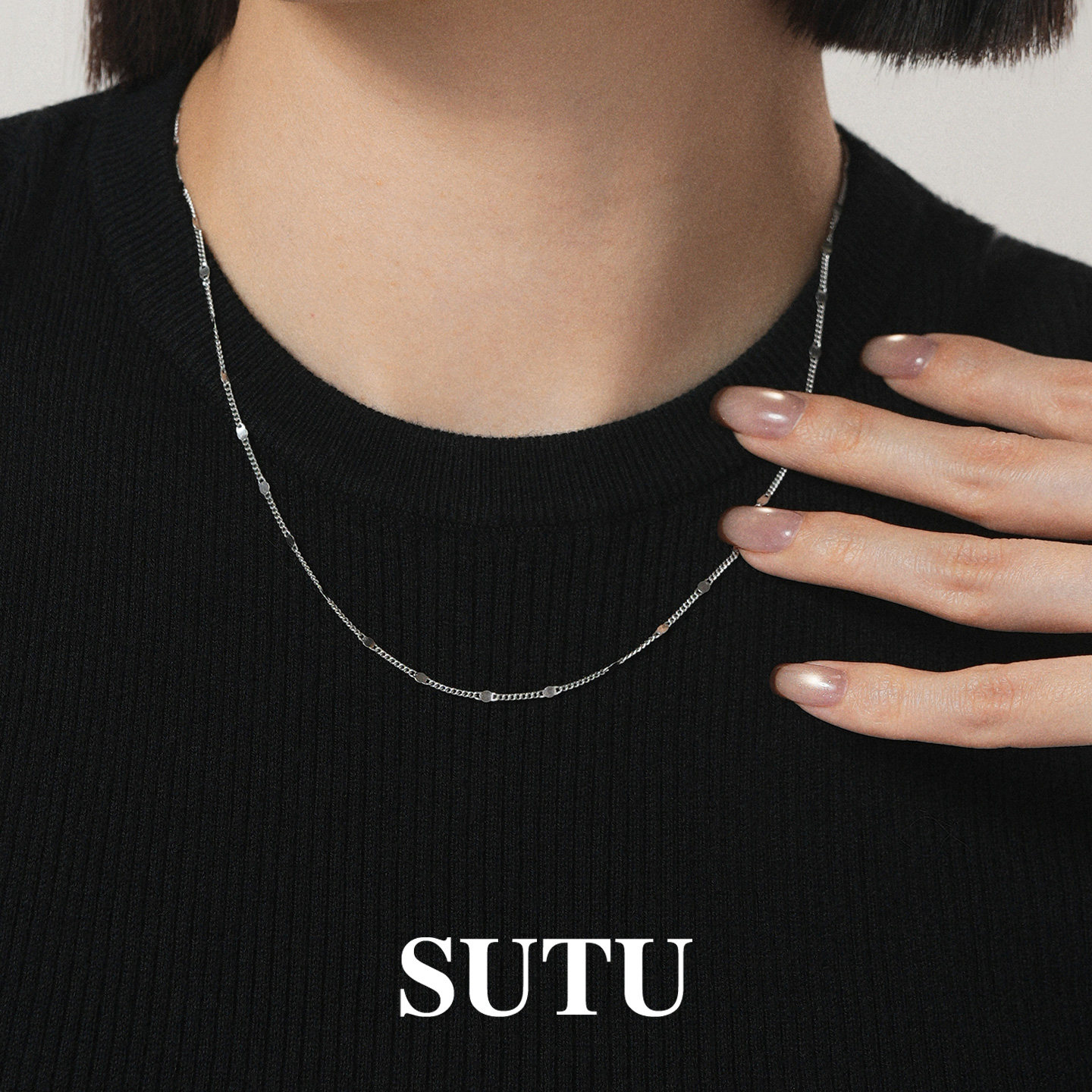 素图闪片s925纯银项链女简约高级感颈链锁骨链轻奢小众配饰饰品