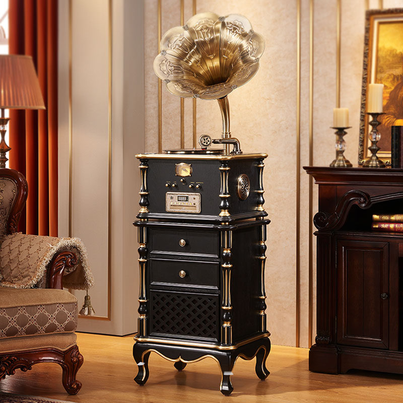 黑胶唱片机留声机复古客厅欧式老式家用大喇叭唱片机电唱机多功能