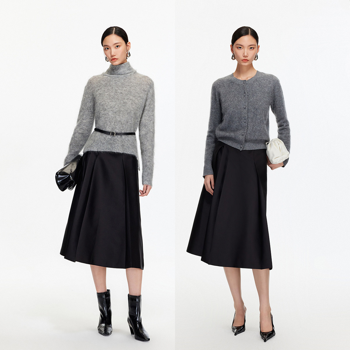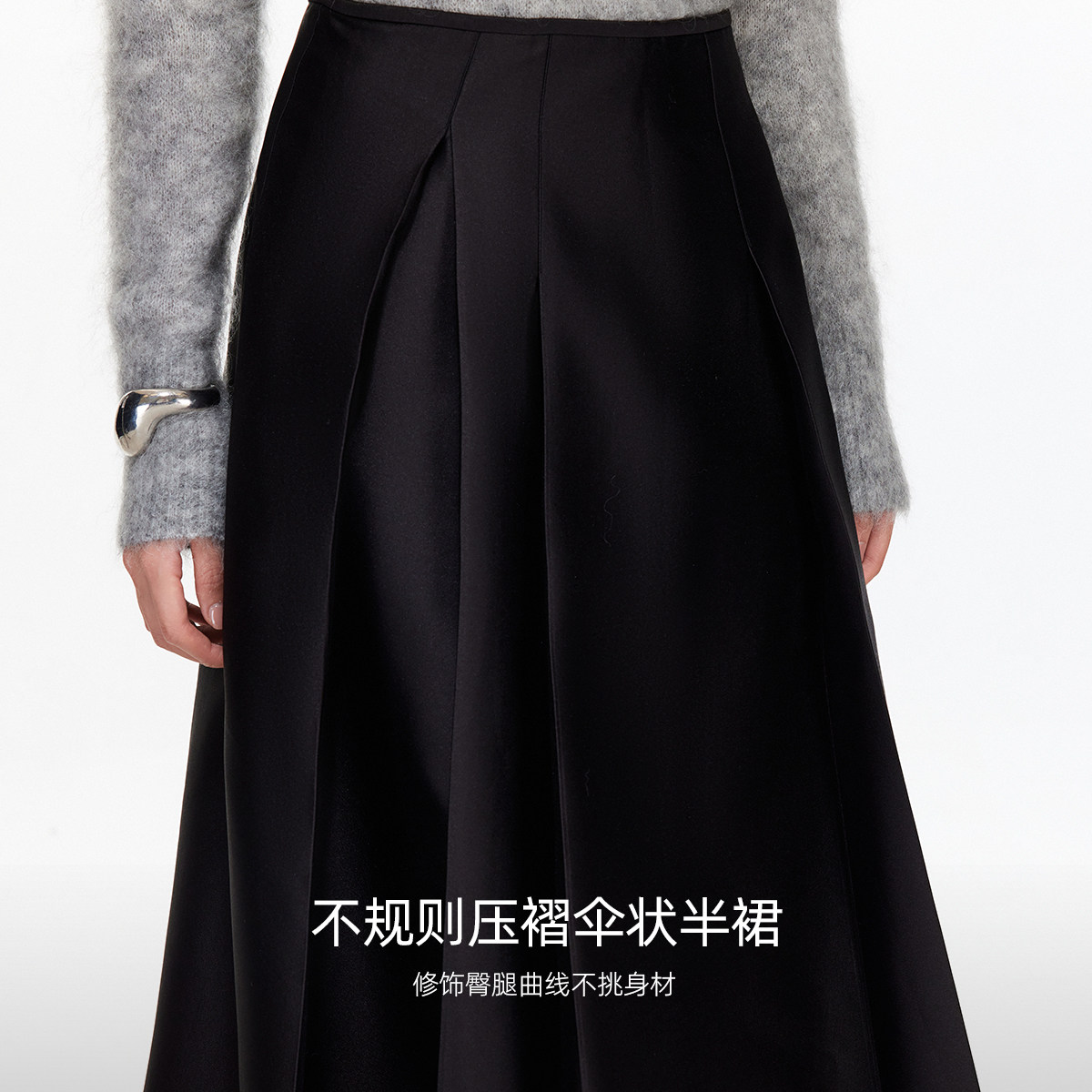 Vero Moda半身裙2025冬季新款压褶时尚简约伞裙优雅气质325416016