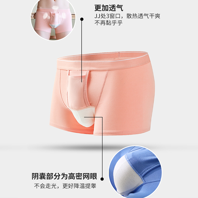 枪弹式分离男士内裤男 纯棉性感U凸囊袋阴囊托透气提睾棉质平角裤