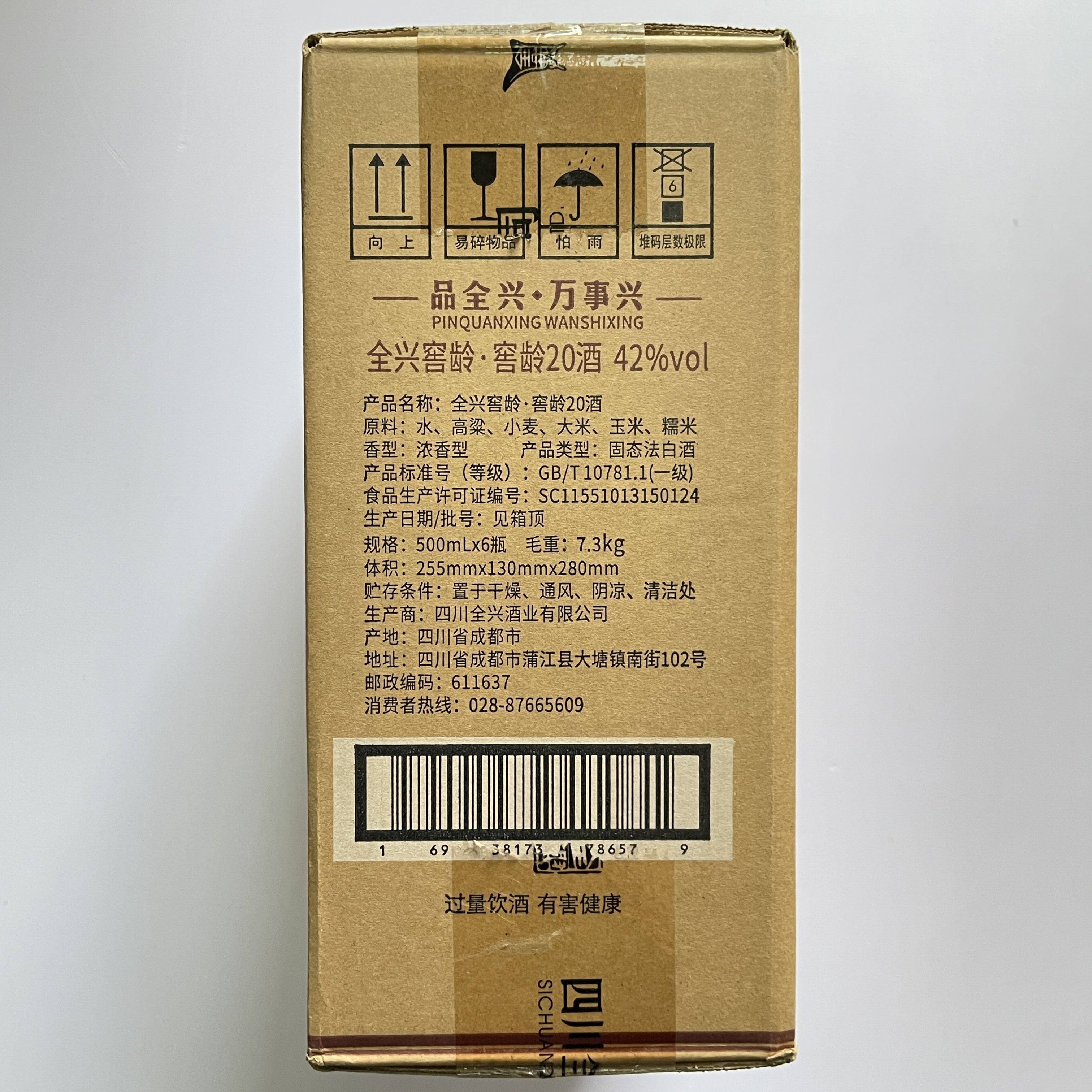 全兴大曲全兴窖龄20酒52度/42度浓香型500毫升*6瓶原箱光瓶白酒