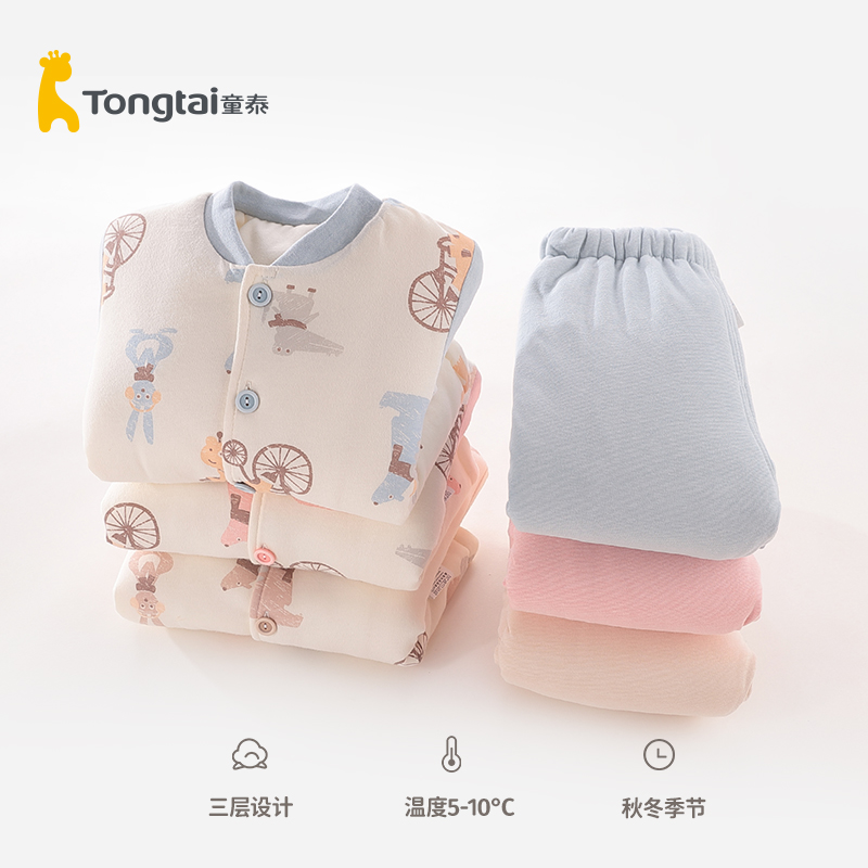 童泰棉衣套装秋冬装加厚夹棉男女宝宝保暖对开棉服新生婴儿儿衣服