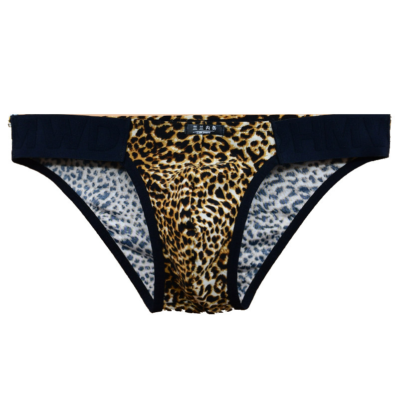 2条男士三角低腰内裤性感豹纹诱惑个性弹力棉透气舒适加宽边柔软