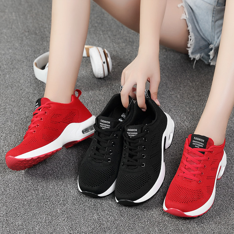 春夏季女鞋运动鞋女网面透气黑色跑步鞋网鞋软底气垫旅游休闲鞋子