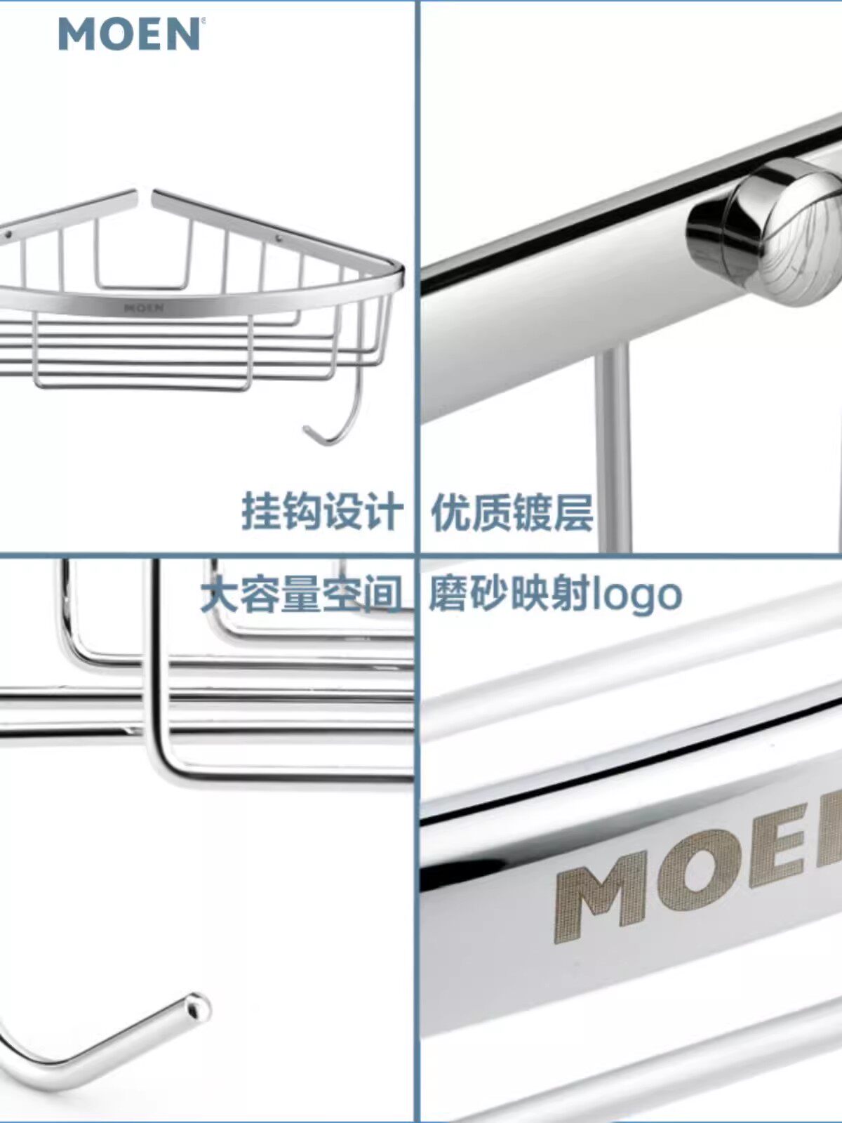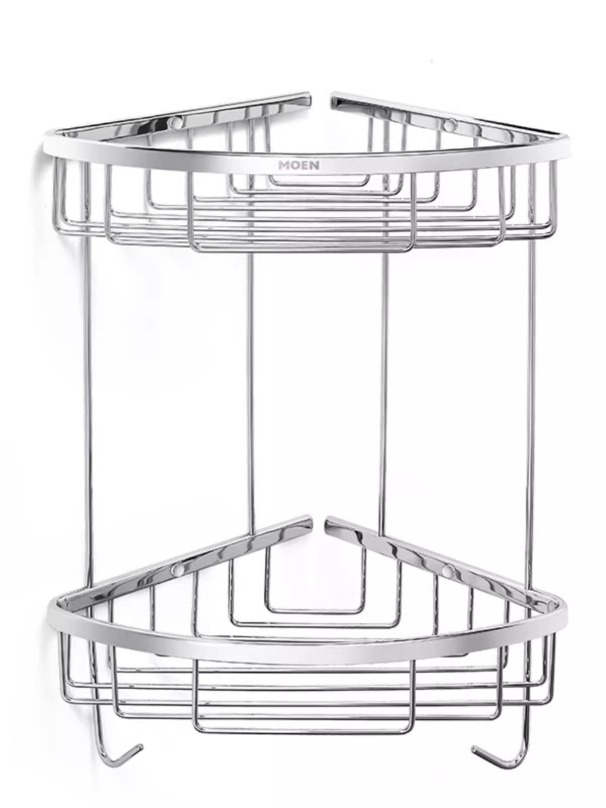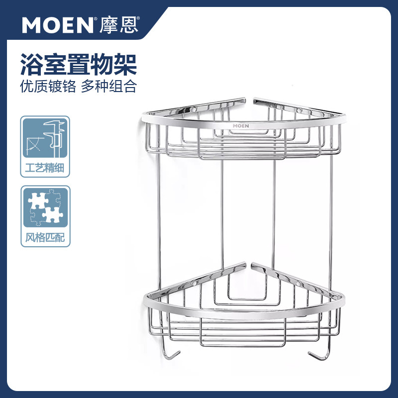 摩恩浴室置物架单层三角篮卫生间墙角双层收纳篮全铜 90102/90104
