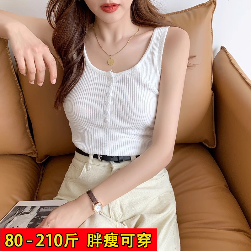 冰丝针织吊带背心女大码胖mm内搭西装打底设计感外穿U领无袖上衣