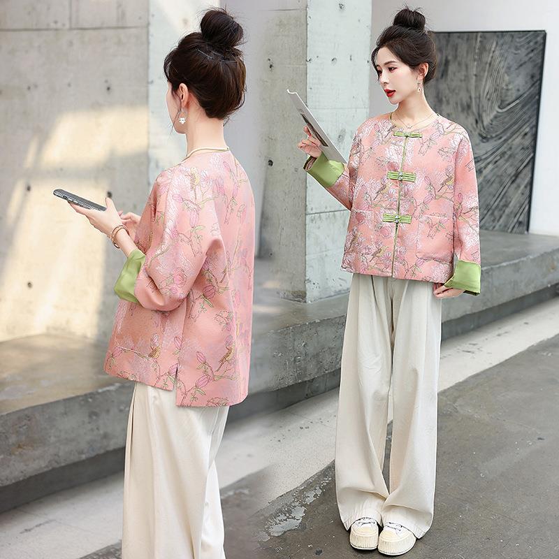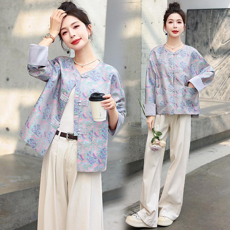 新中式女春秋新款装中国风盘刺绣提花感改良装润1069上衣外唐扣套