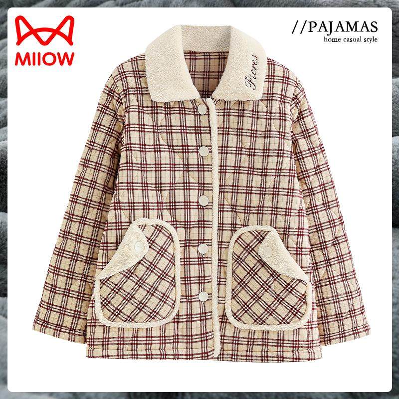 猫人单件上衣睡衣女冬季加厚纯棉三层夹绒法兰绒秋冬外穿秋冬女款