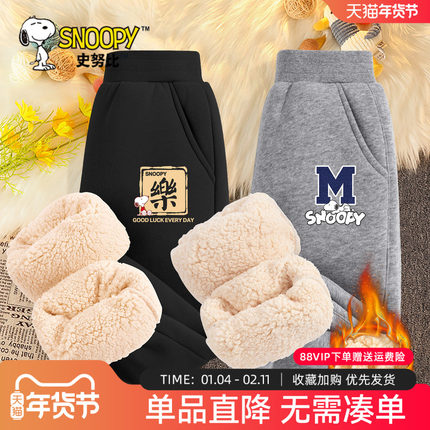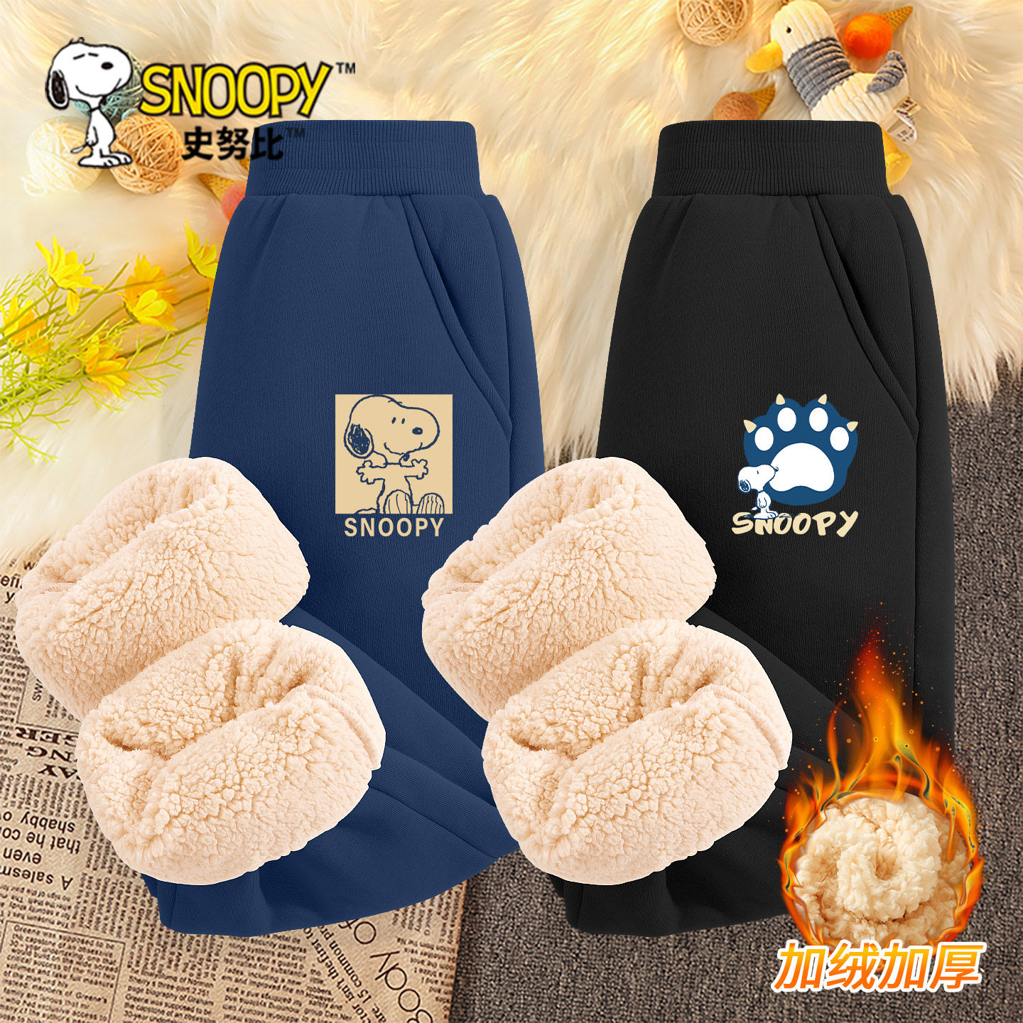 史努比男童裤子2026新款冬季加厚羊羔绒棉裤一条过冬裤儿童加绒裤