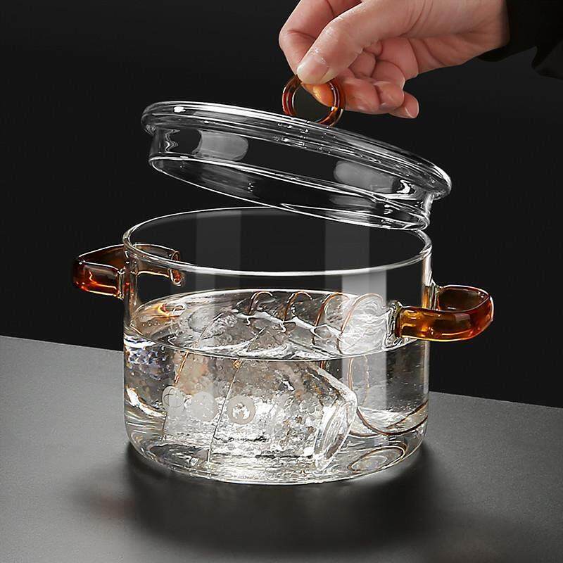 玻璃消毒锅茶洗带盖子洗茶器可明火耐高温大号黑晶炉煮茶杯器笔洗