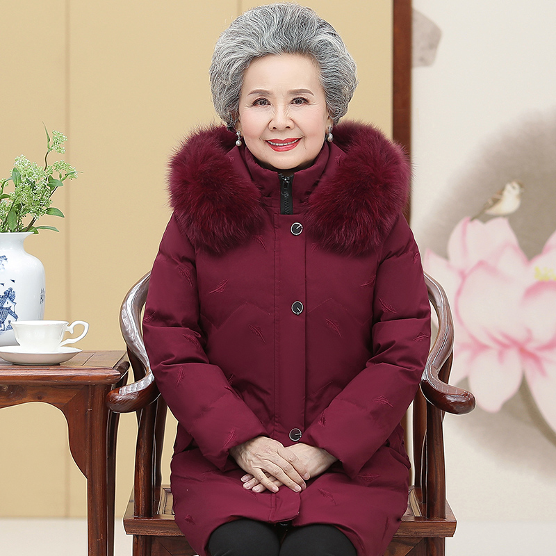 中老年人冬装女妈妈羽绒服中长款狐狸毛领奶奶冬季加厚老太太衣服