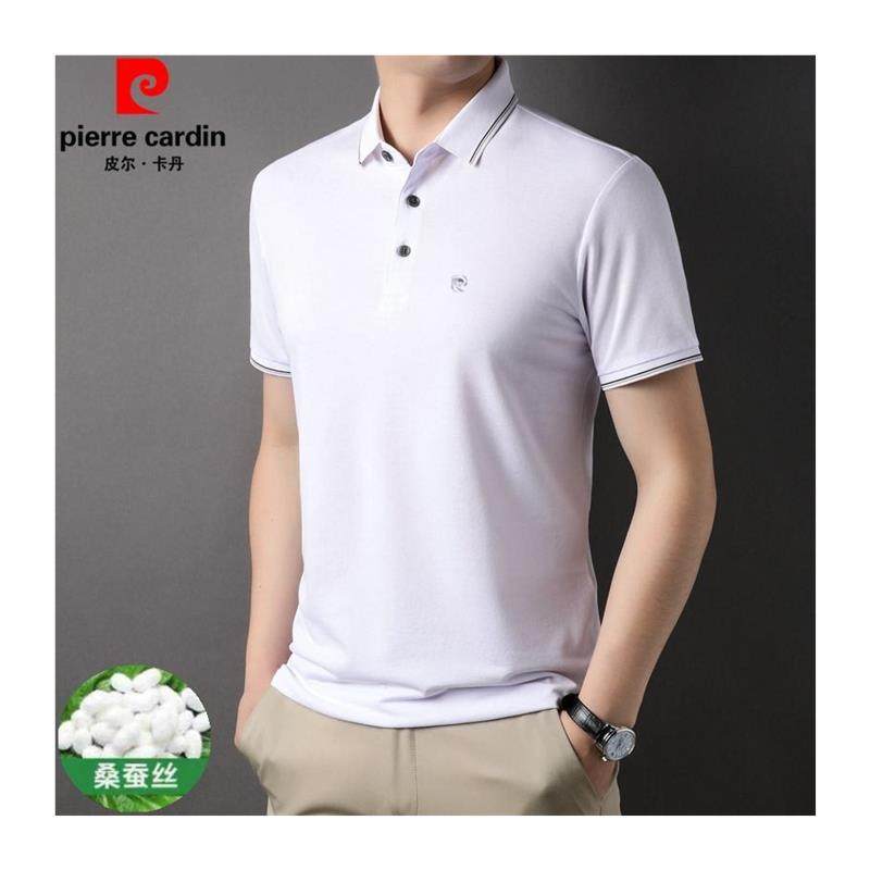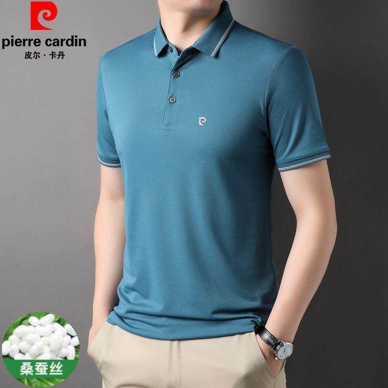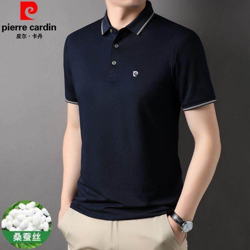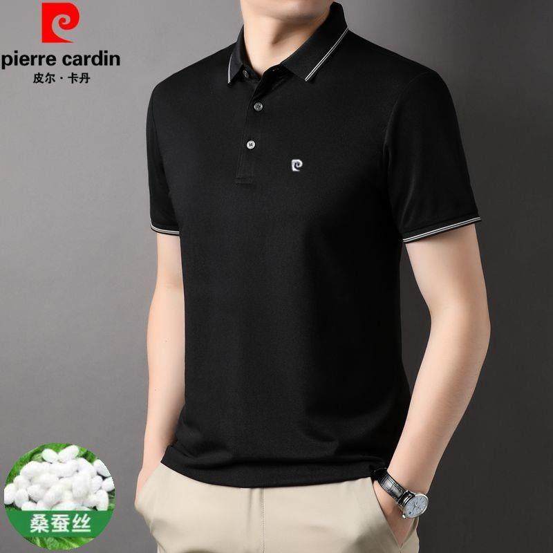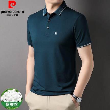 皮尔卡丹夏季高档男士桑蚕丝短袖T恤休闲薄款纯色翻领半袖POLO衫
