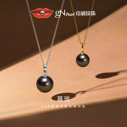 京润珍珠暮雅18K金海水珍珠吊坠8.5-10.5mm圆形大溪地黑珍珠项链D