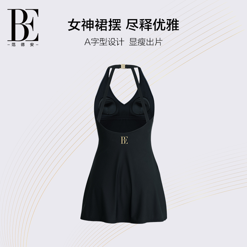范德安小黑裙连体泳衣女