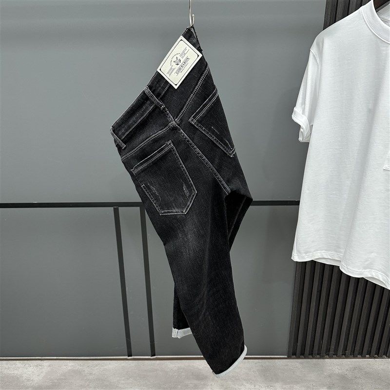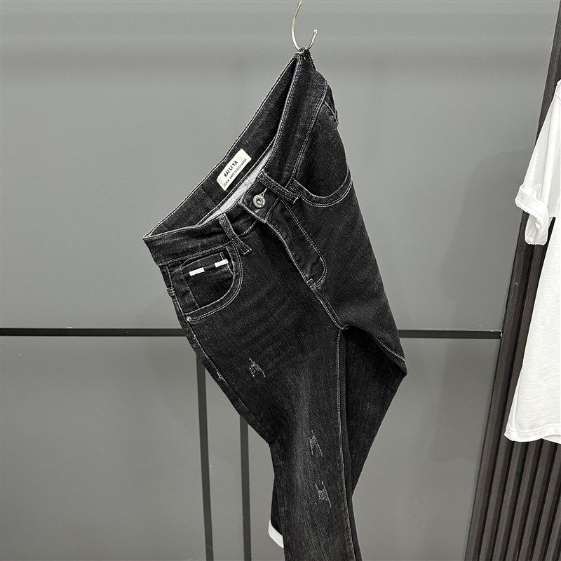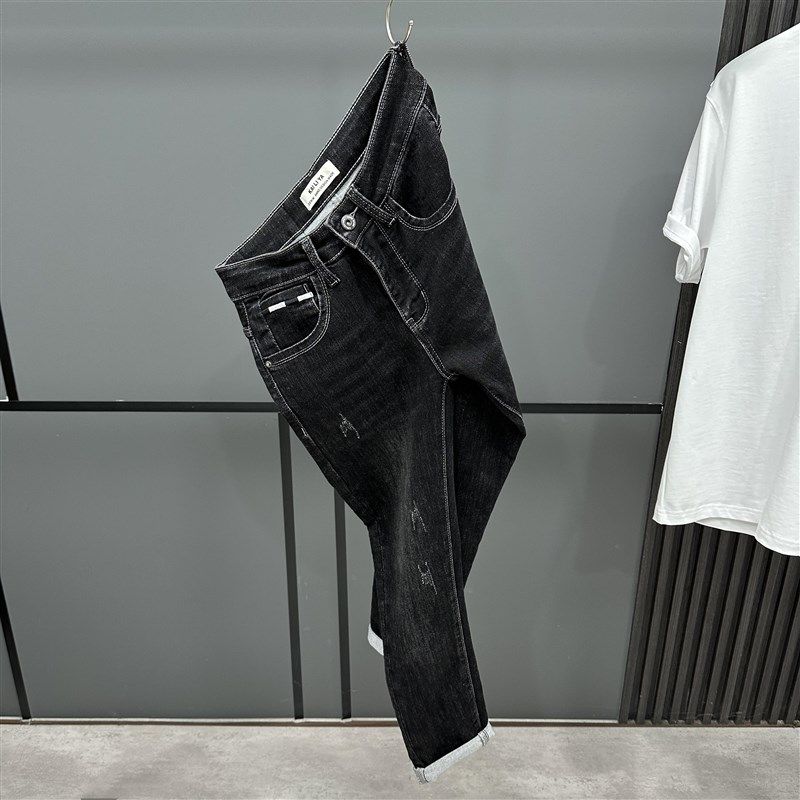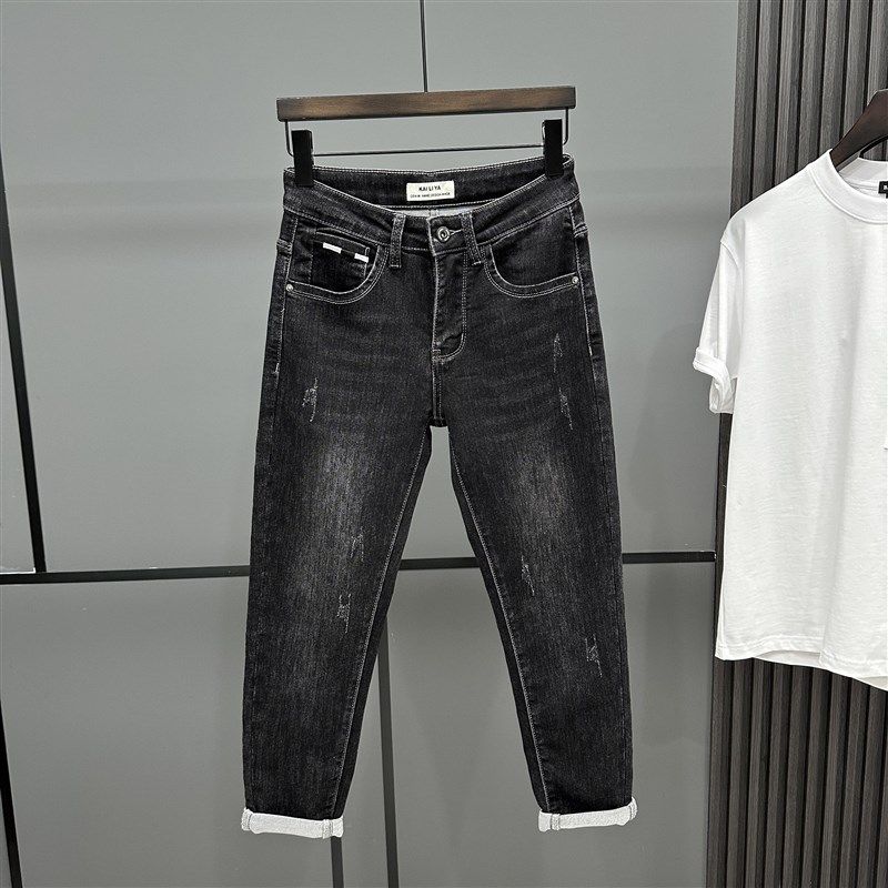 刺绣黑色水洗猫须抓痕修身小脚九分牛仔裤男春新弹力潮流百搭长裤