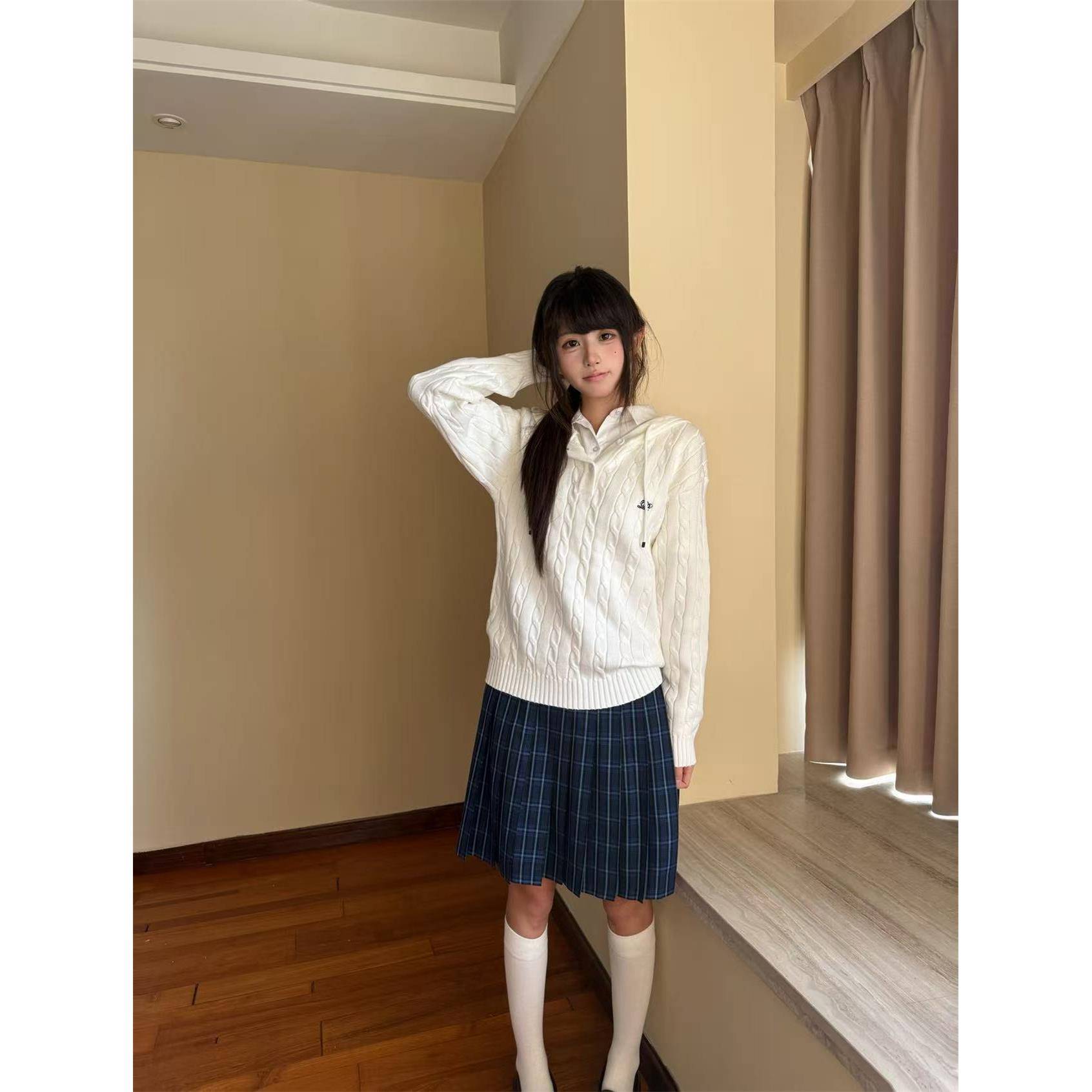 水济中麻花套头毛衣JK外套女秋冬季学院风制服校供感长袖针织上衣