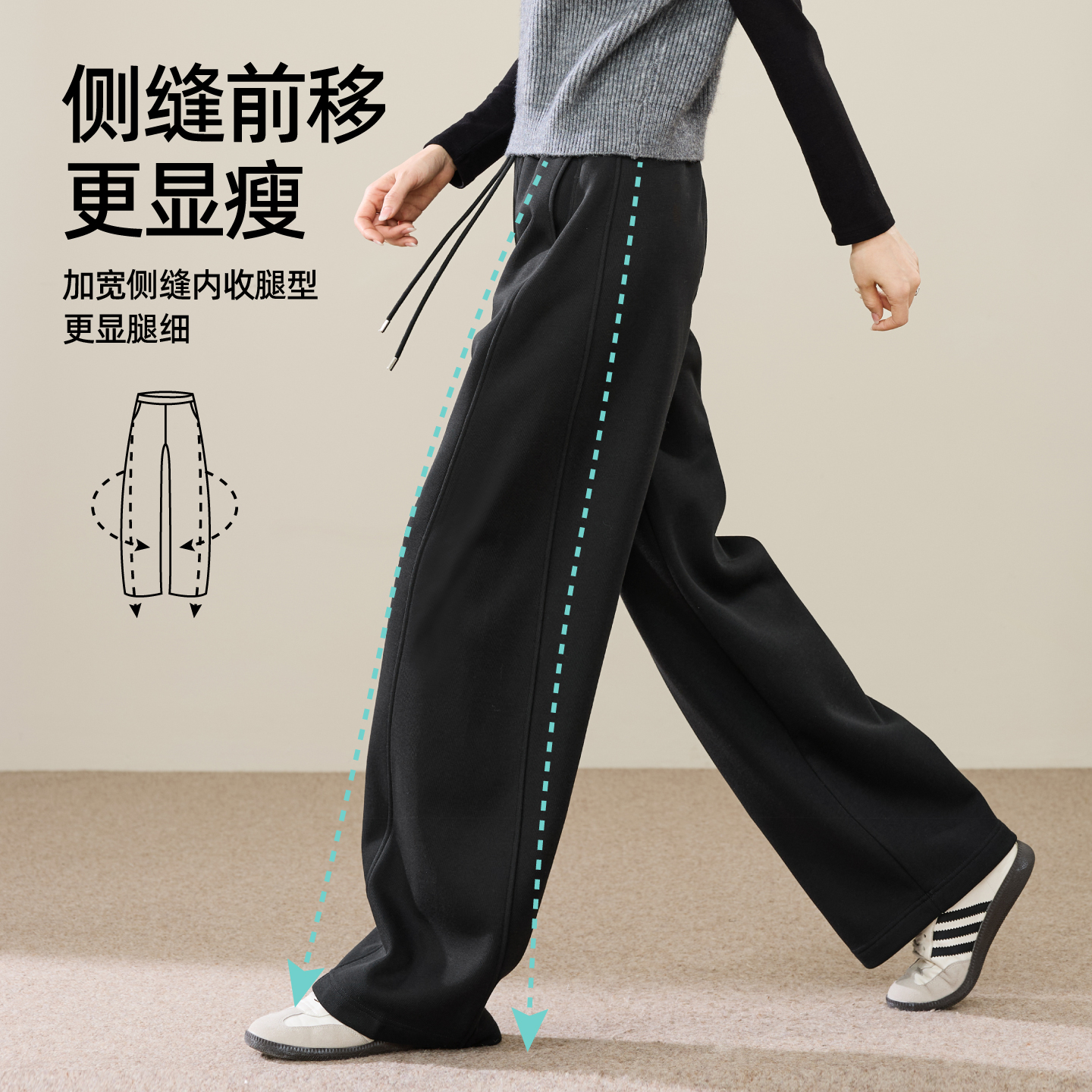 逸阳加绒香蕉运动裤女2025年冬新款显瘦高腰卫裤宽松灰色休闲裤子