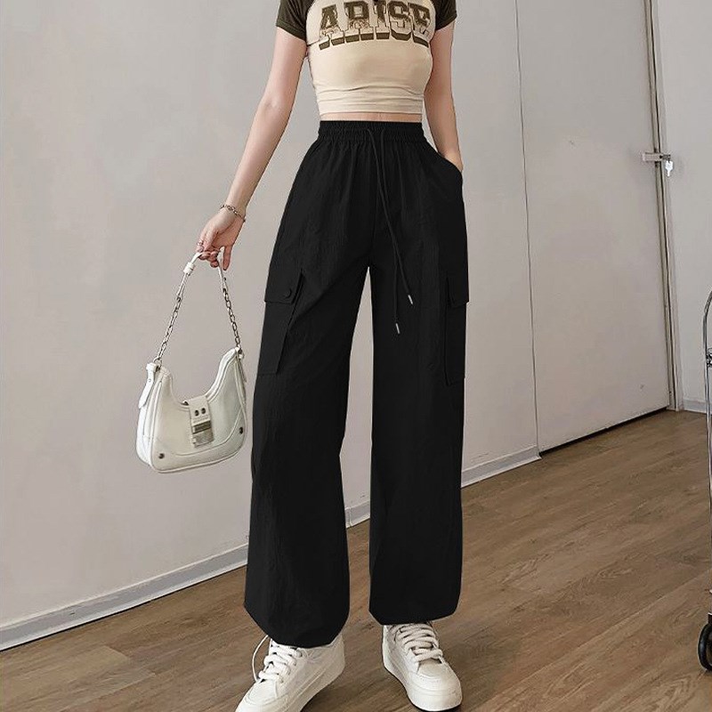 大码裤子女200斤胖mm夏季薄款宽松显瘦休闲运动冰丝速干工装裤潮