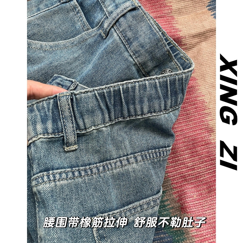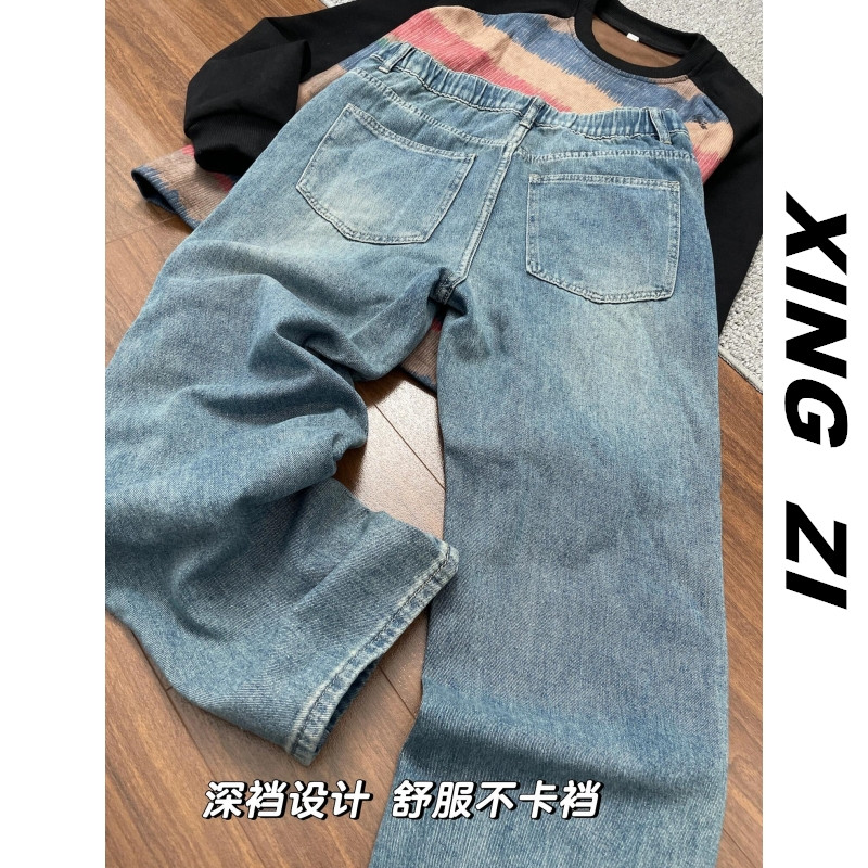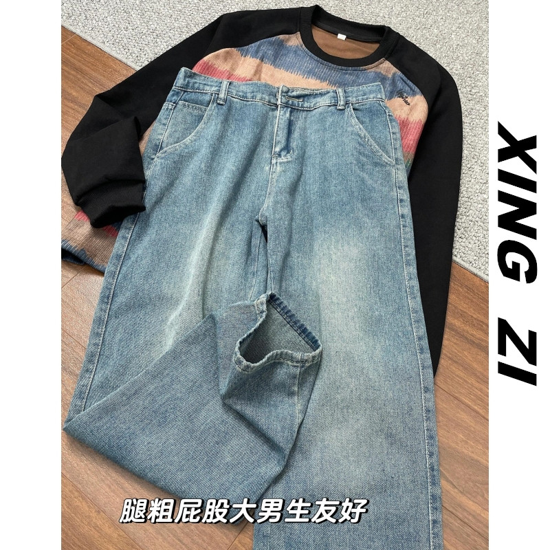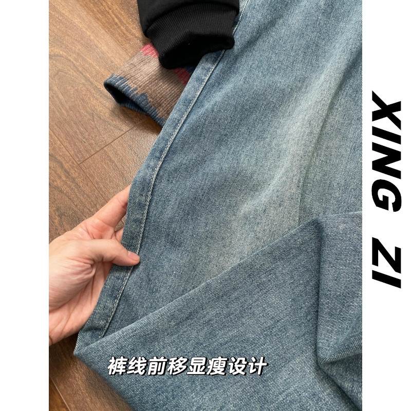 港风复古牛仔裤男生直筒宽松秋冬季高街潮流显瘦显高九分裤休闲裤