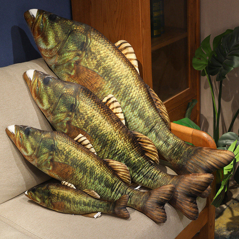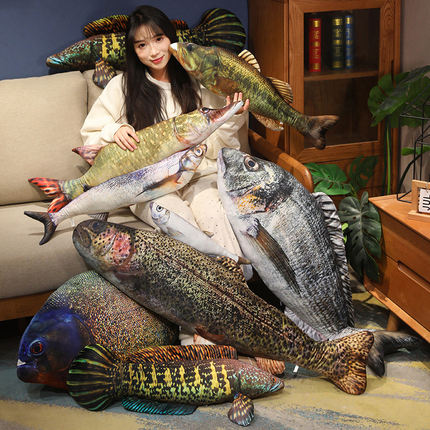 创意3d仿真鱼玩偶毛绒玩具鲈鱼抱枕搞怪儿童男生日礼物娃娃公仔女