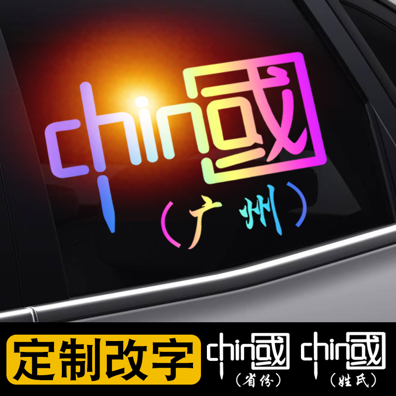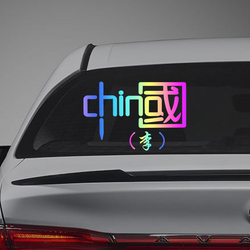 中国车贴反光china加油字样七彩