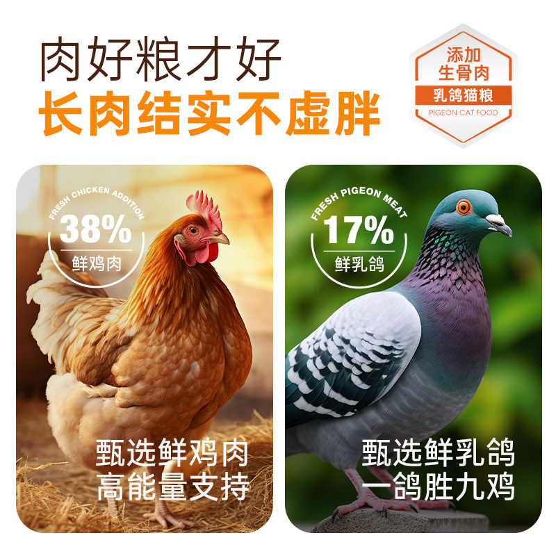 钧卓乳鸽低温烘焙鲜肉猫粮冻干高蛋白幼猫成猫营养发腮无谷猫主粮