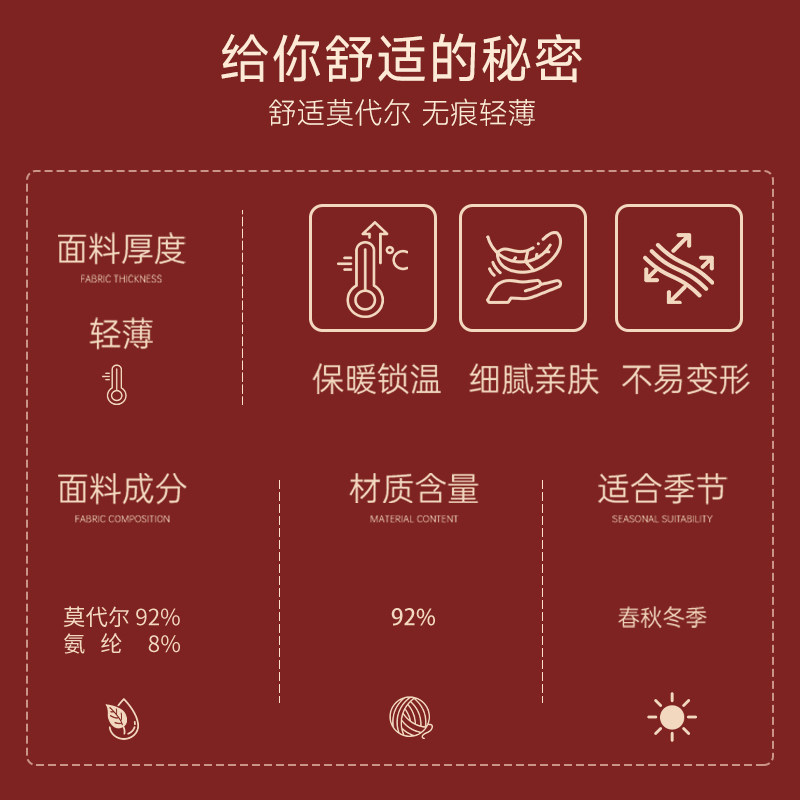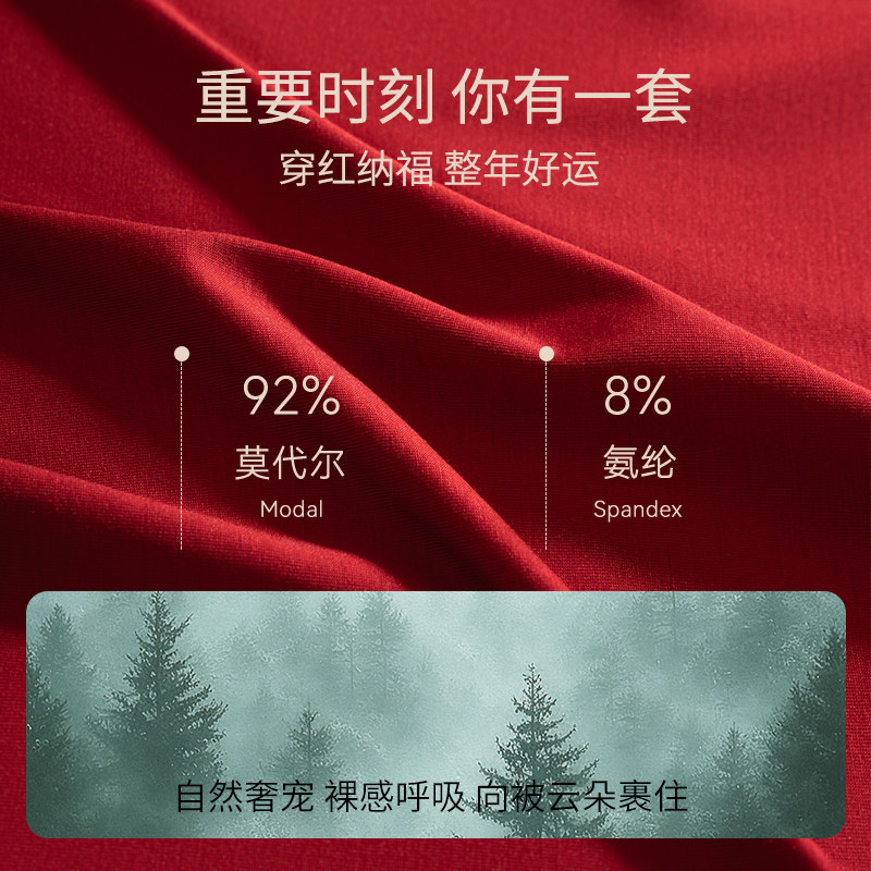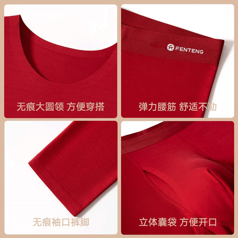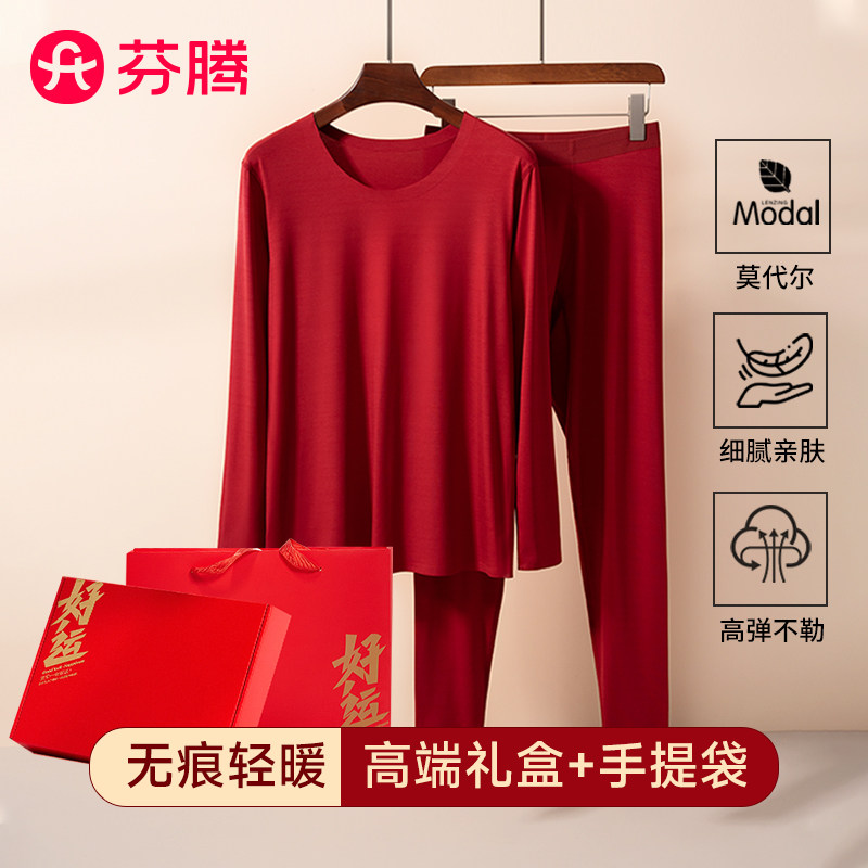 芬腾红色保暖内衣无痕莫代尔礼盒套装新款薄款男士本命年秋衣秋裤