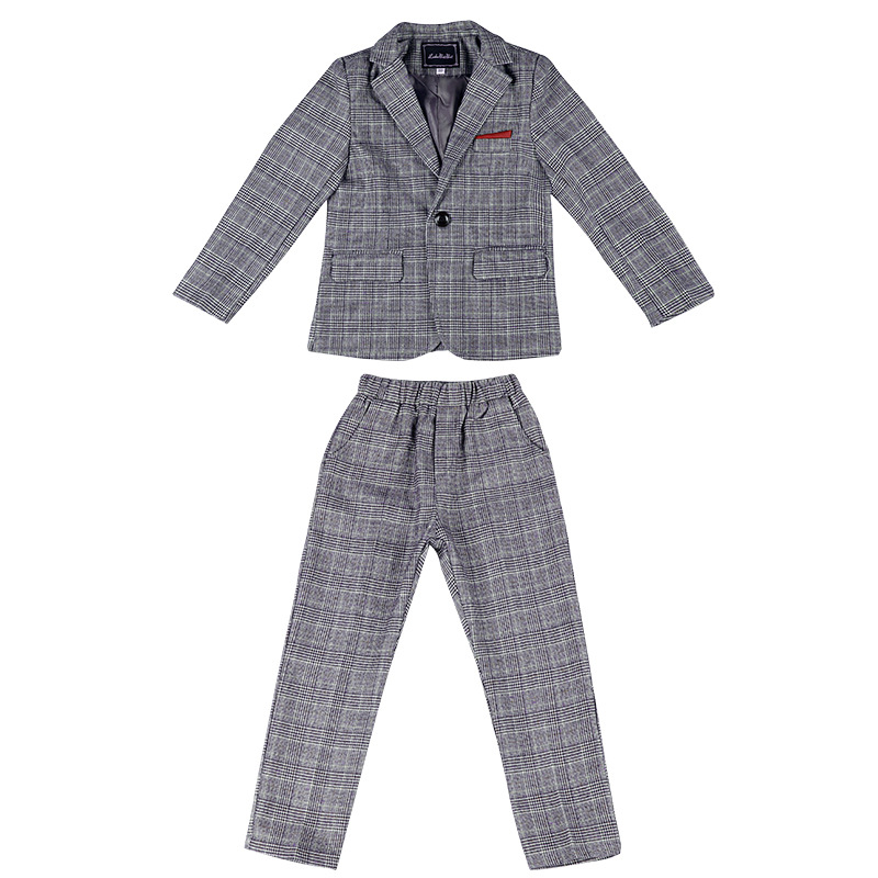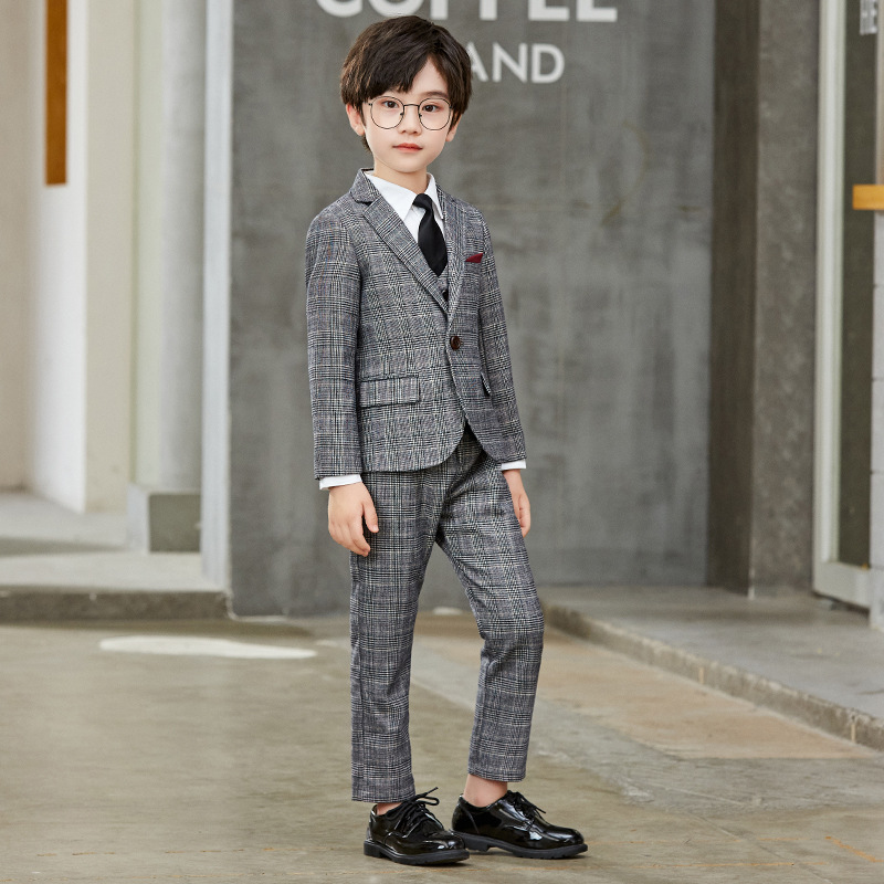 极速儿童套装新款j韩版灰格小西装三件套男童舞台走秀主持演出礼