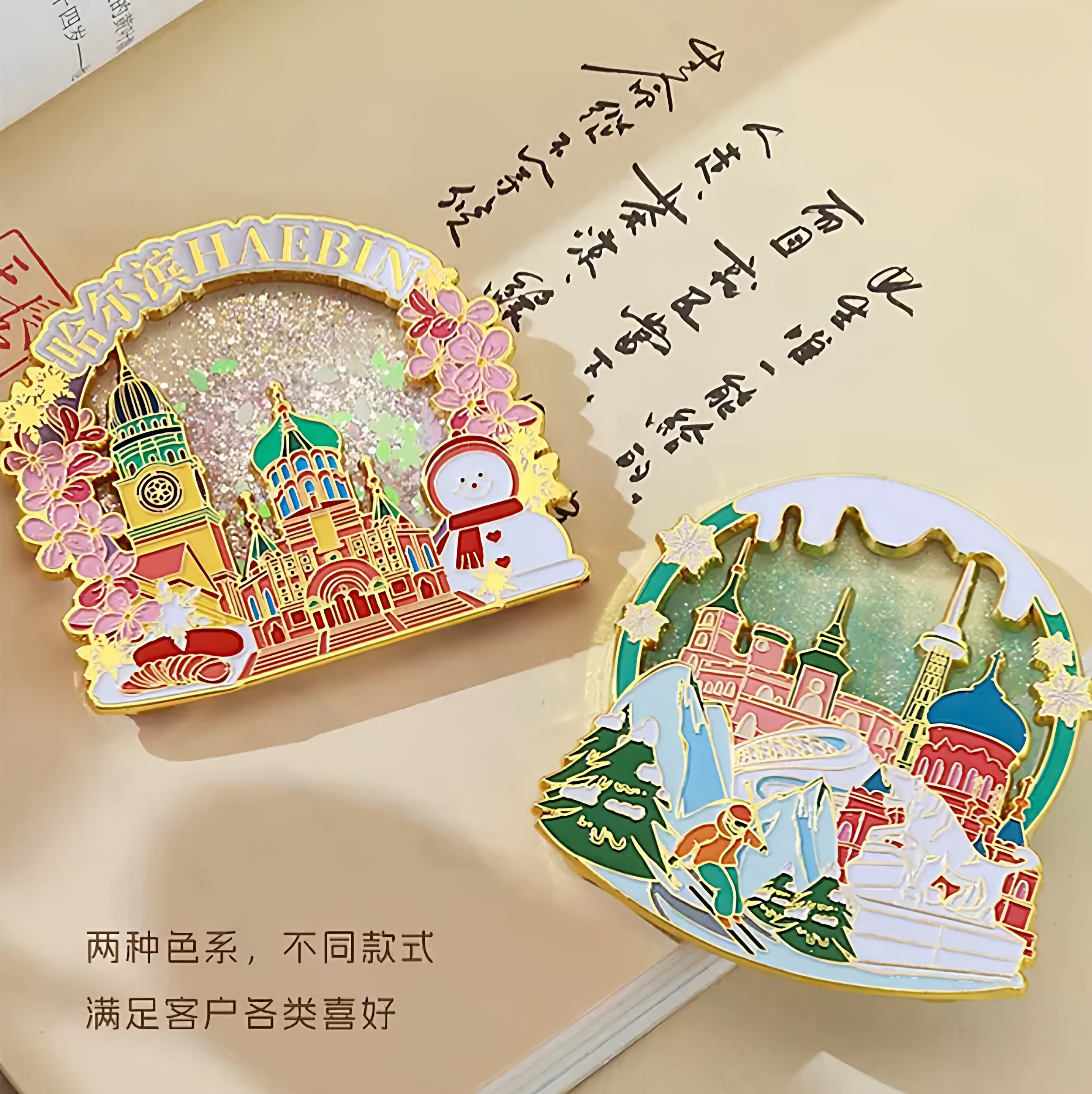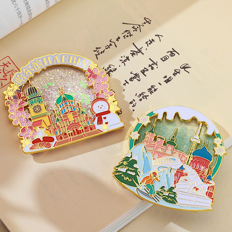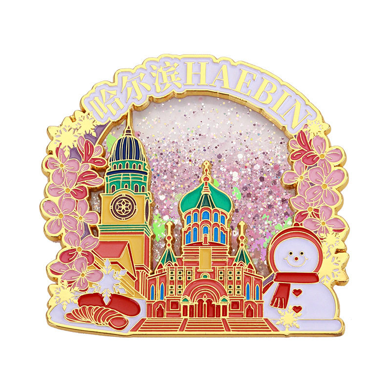 哈尔滨冰雪大世界金属流沙冰箱贴哈尔滨创意文创旅游纪念品伴手礼
