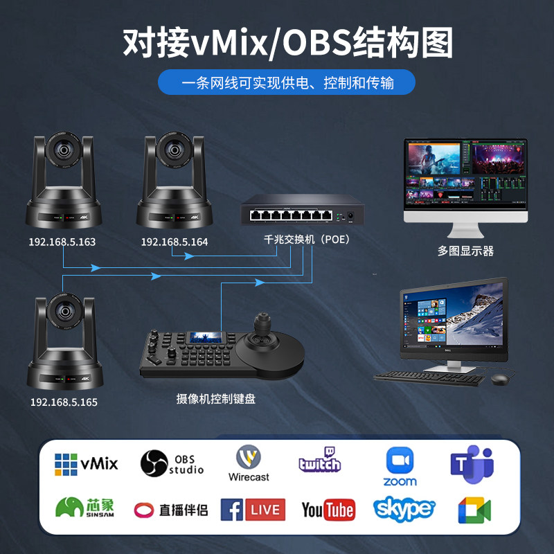 生华视通4K超清PTZ直播摄像机酒吧视频会议画室摄像头NDI vmix导播obs软件POE教堂足球赛事直播录播SH-HD690R