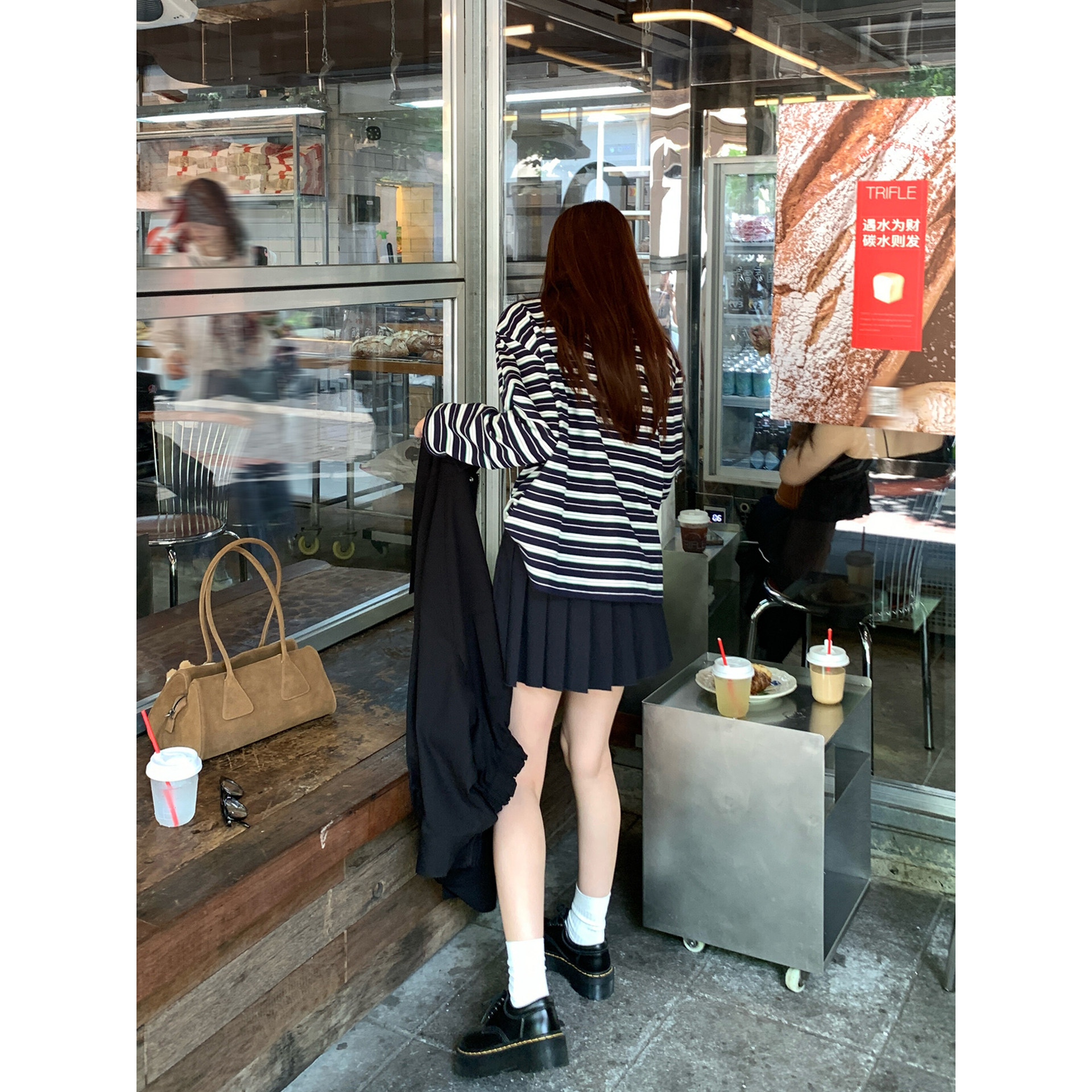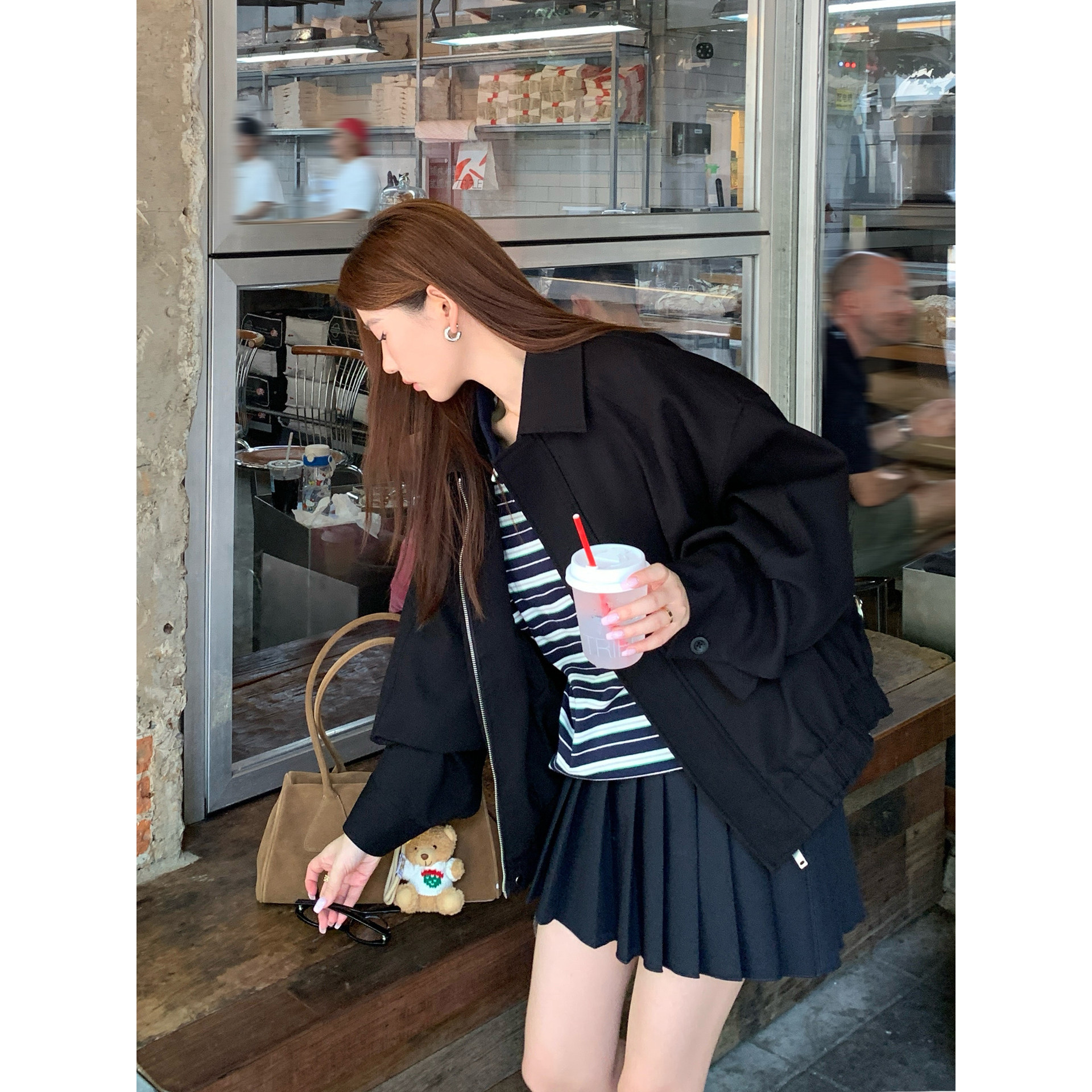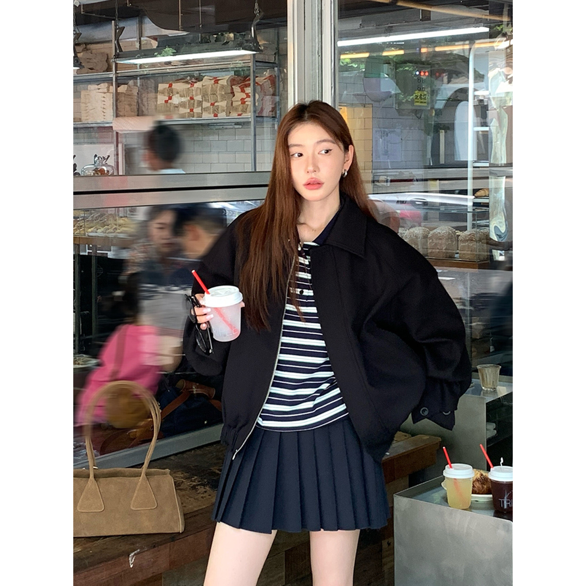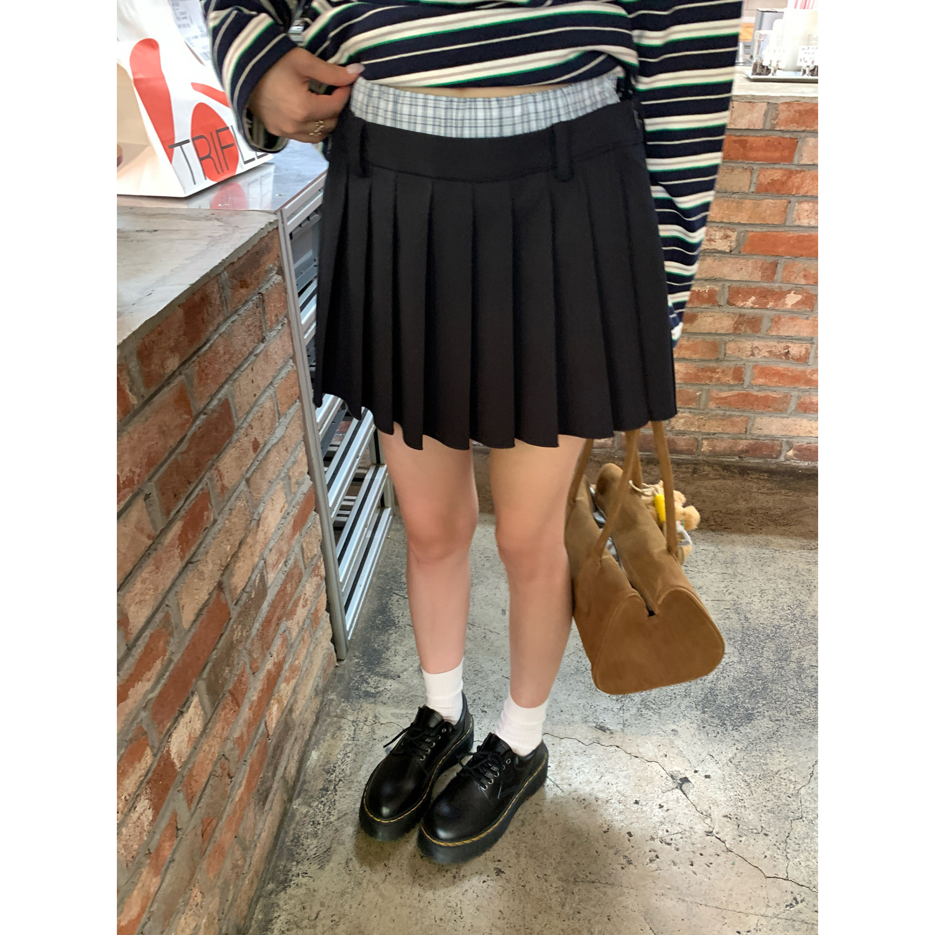 HaloLuu藏青色百褶裙